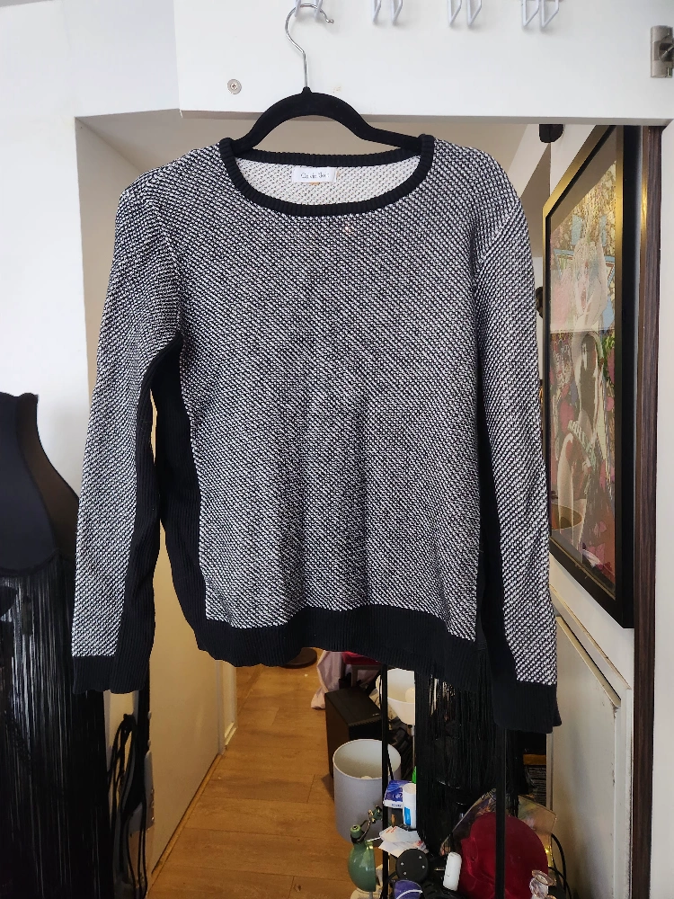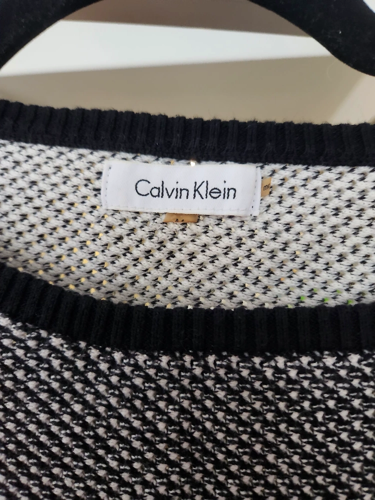 1000+Calvin Klein Dual Texture Scoop Neck Sweater Size Medium Black & white textured loop weave Ribbed knit onyx black sides, sleeve inseam & hem lines Mid weight cotton blend Scoop neck Straight hem Cotton blend Pullover * Cash Only * * No E-transfers * * Pickup Only * * Serious Offers Only *