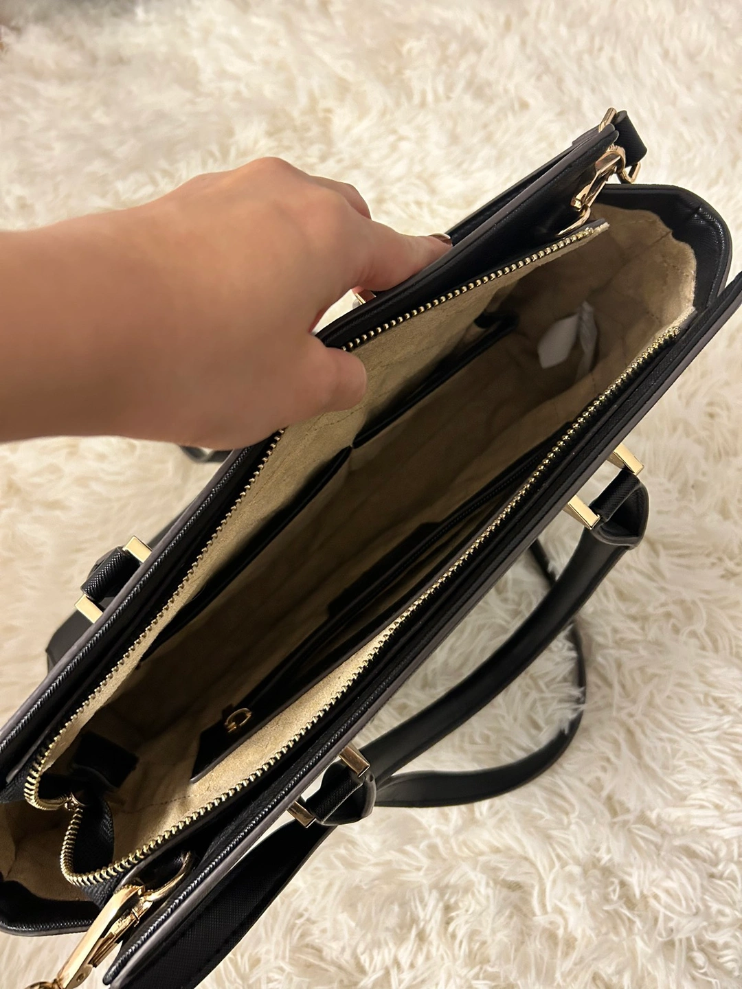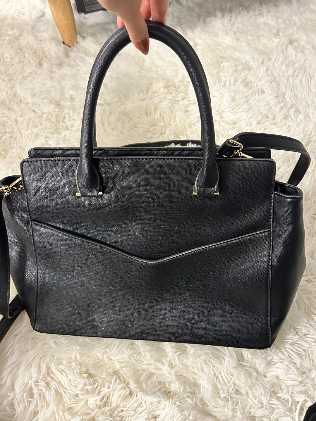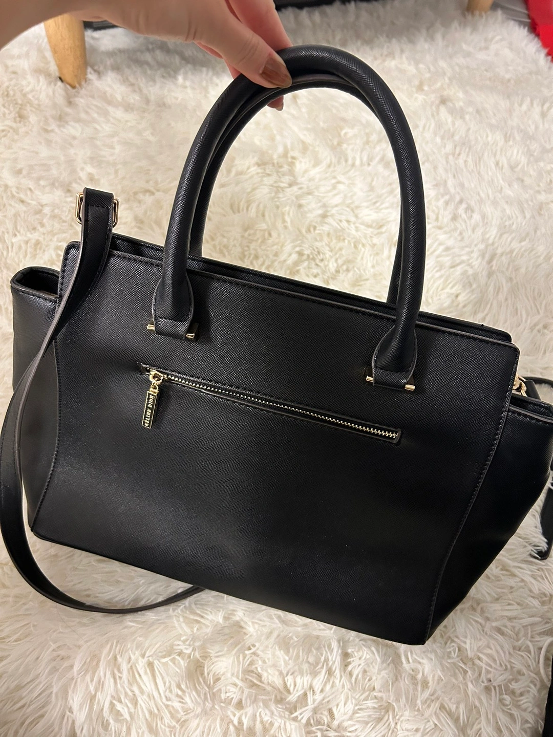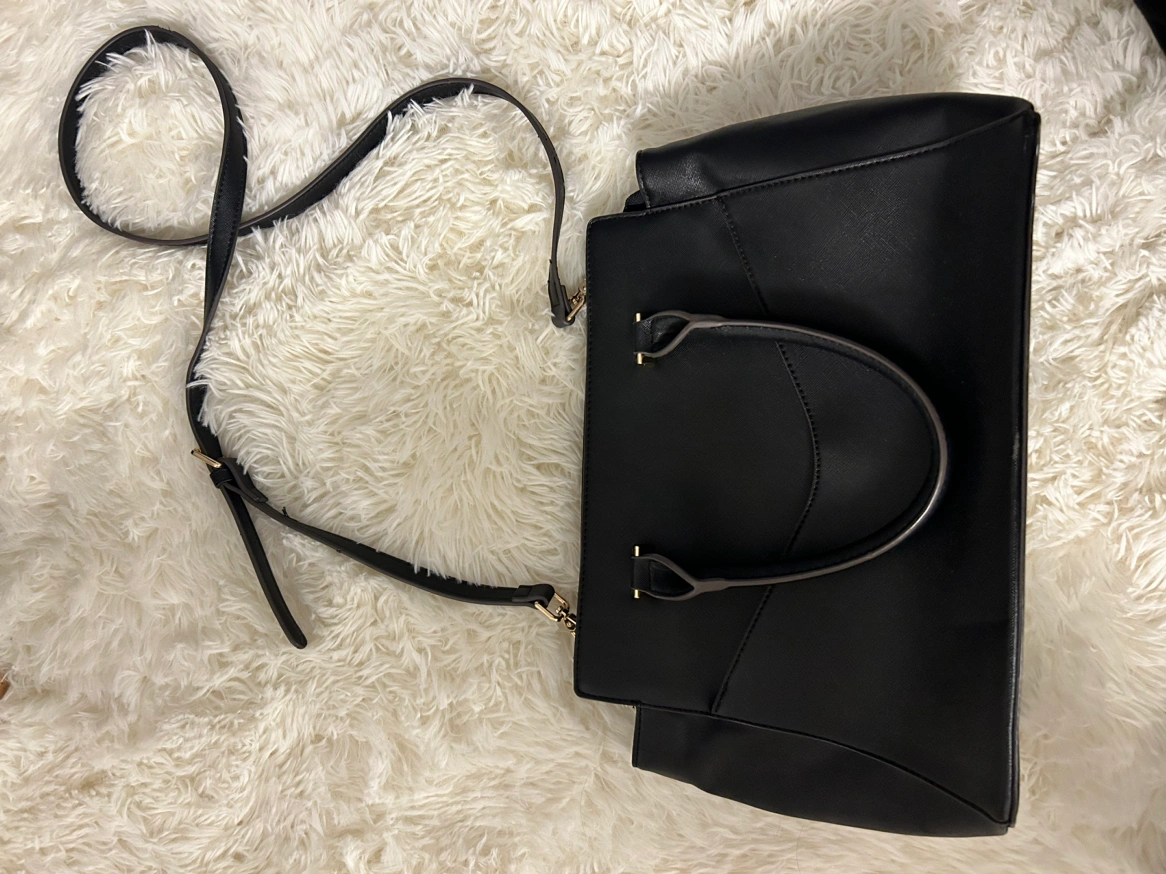 Removable straps so it can be worn in three ways. Looks new - no scratches to leather or gold detailing.