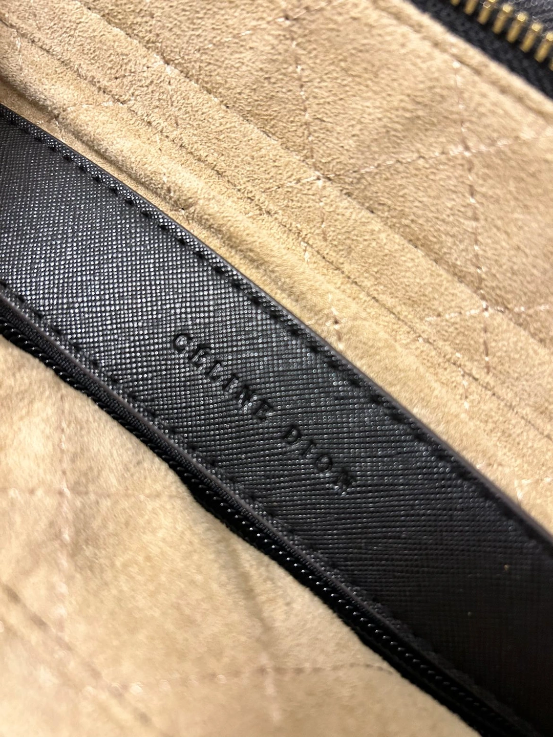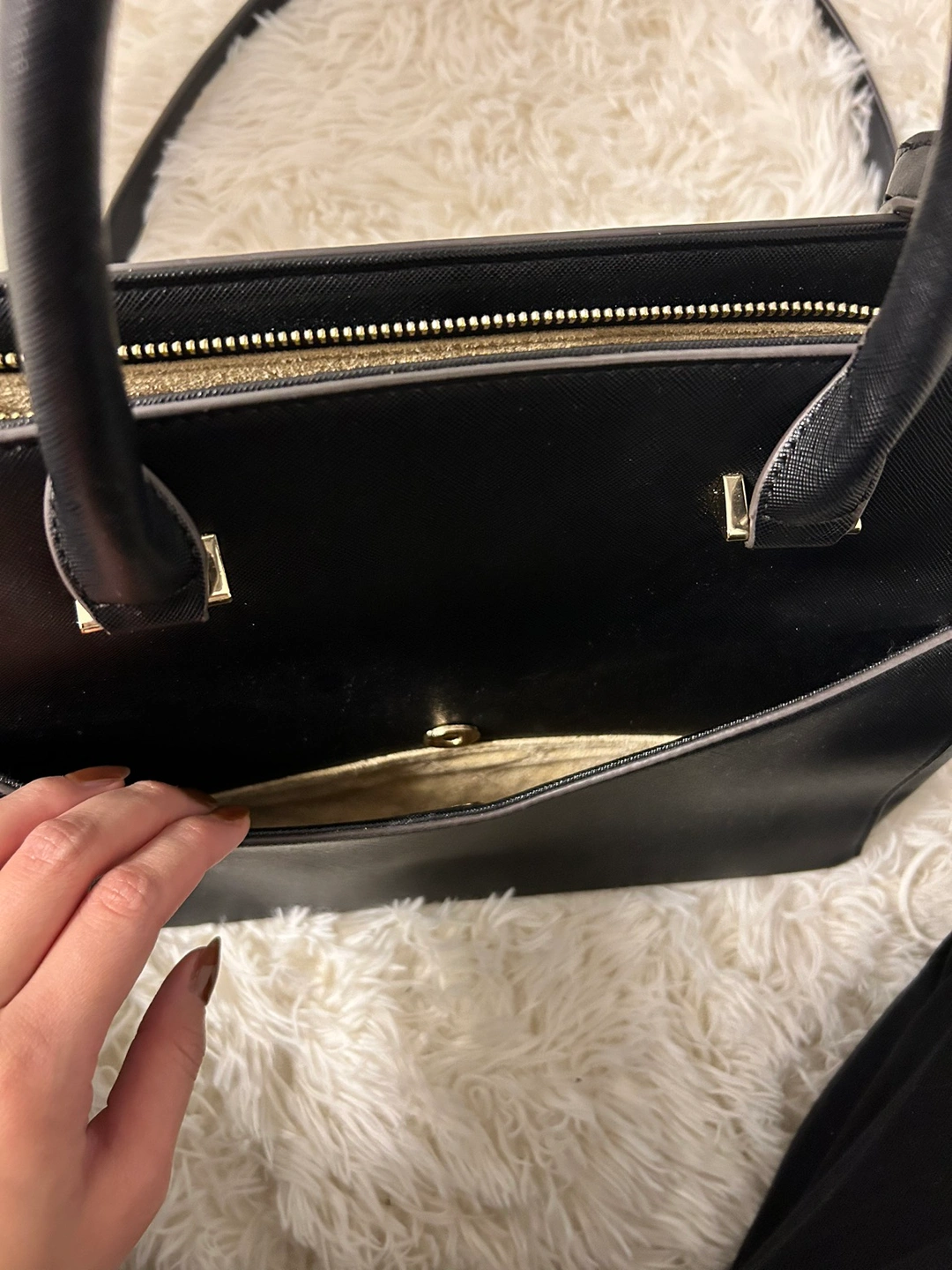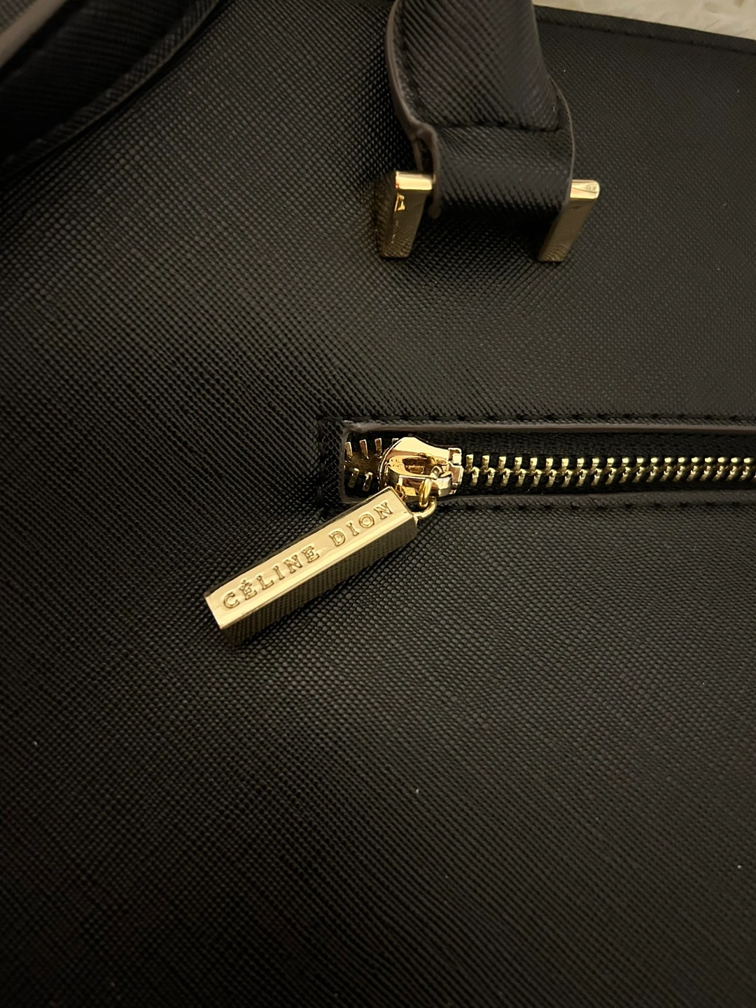 Celine Dion handbag with gold detailing.
