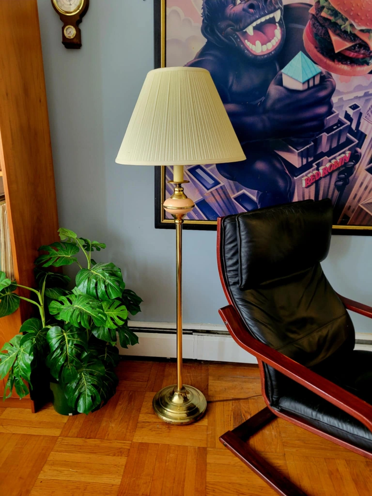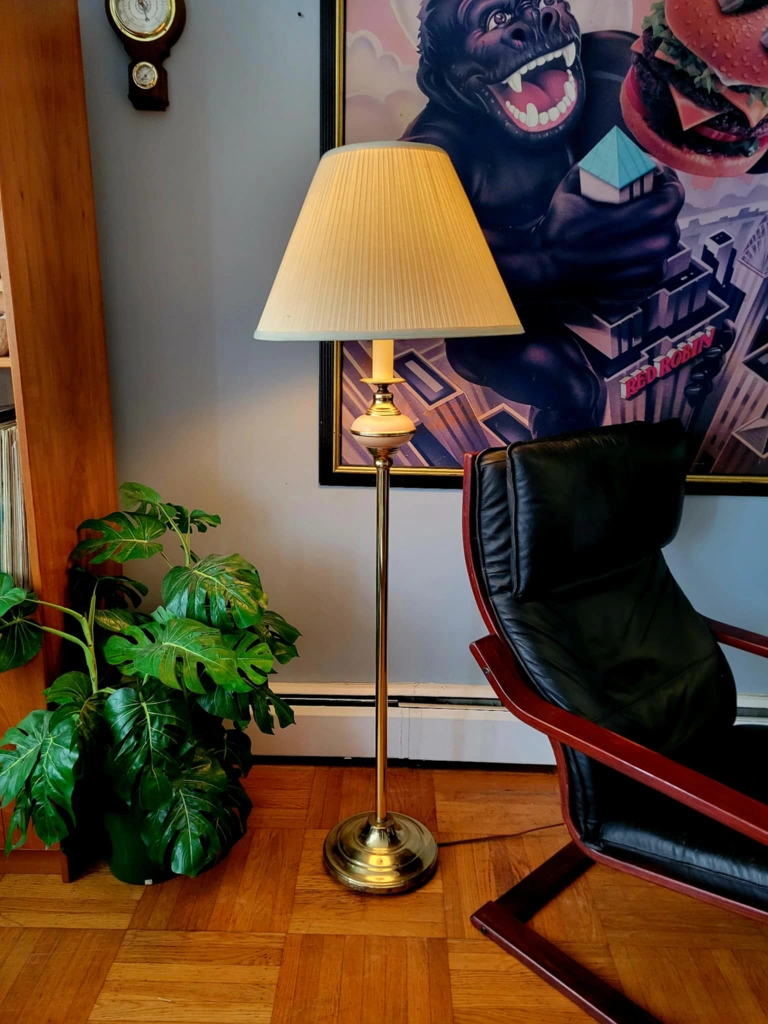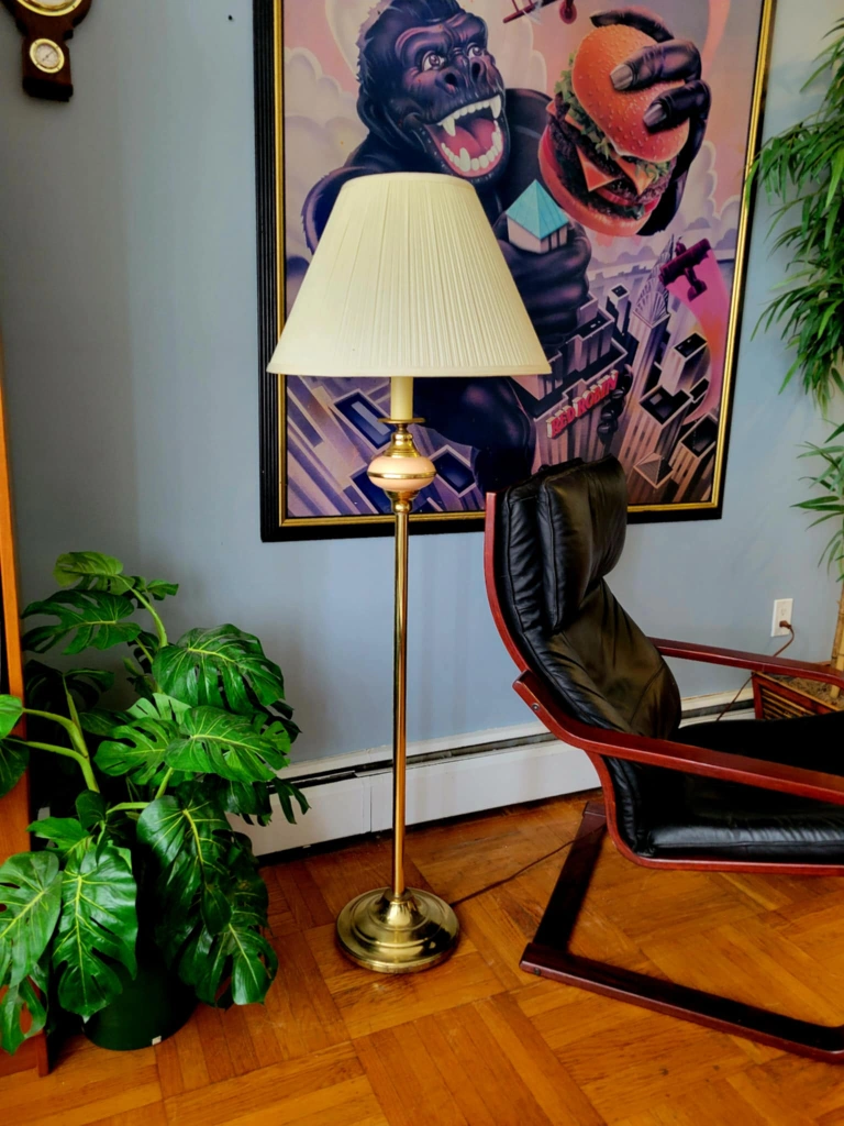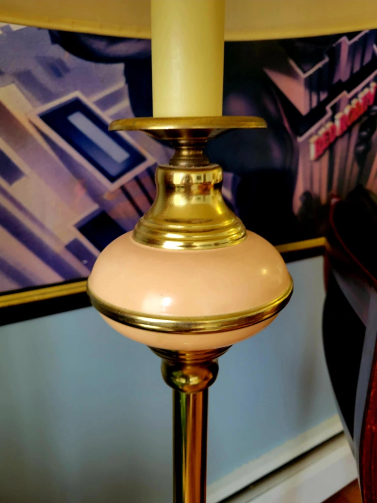 Vintage Brass Floor Lamp With Pink Accents (Delivery Available)