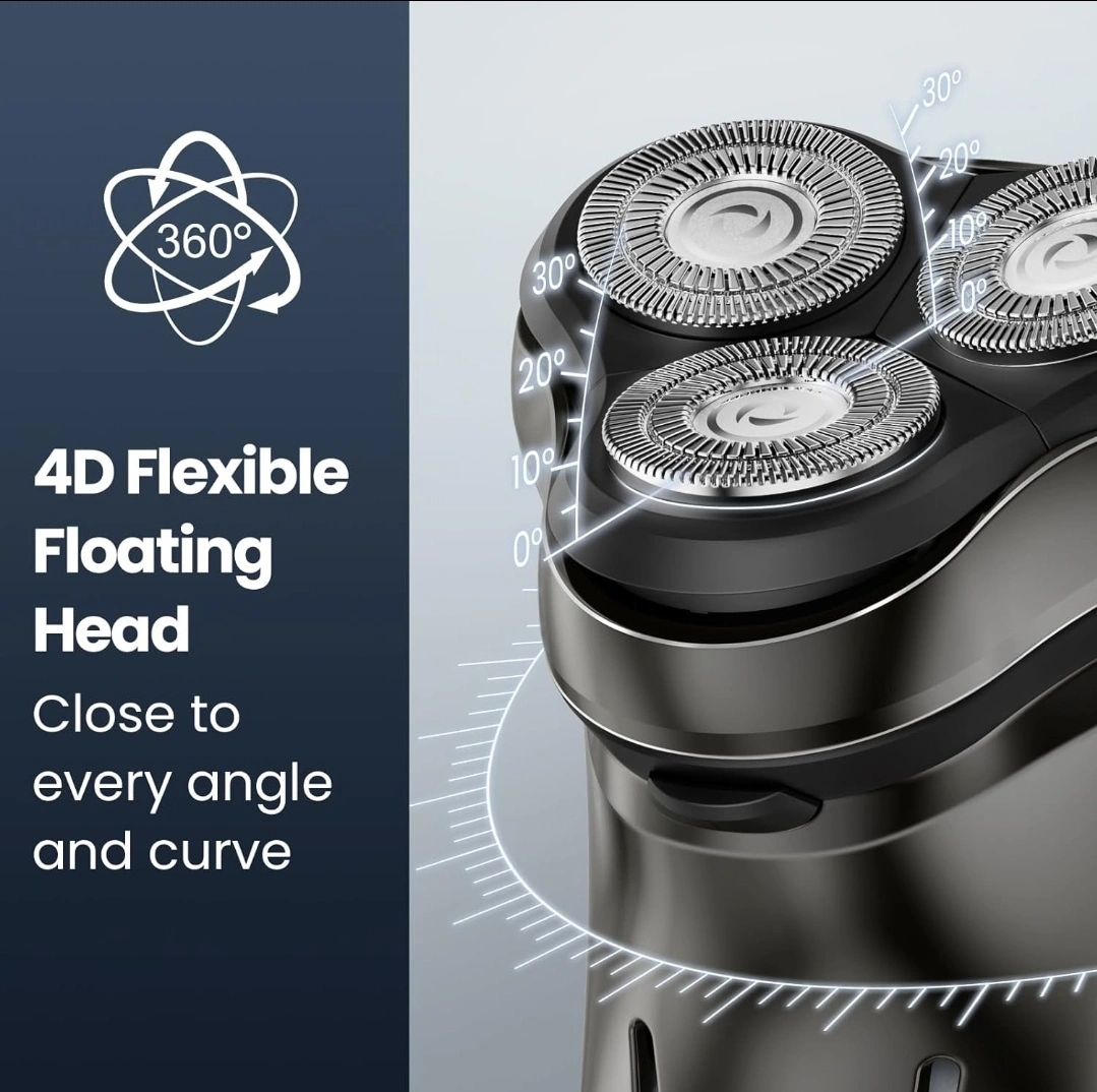 - 4D Floating Shaving Head: Features precision blades and a high-speed motor, gliding smoothly along face, neck, and chin for a quick, efficient shave.