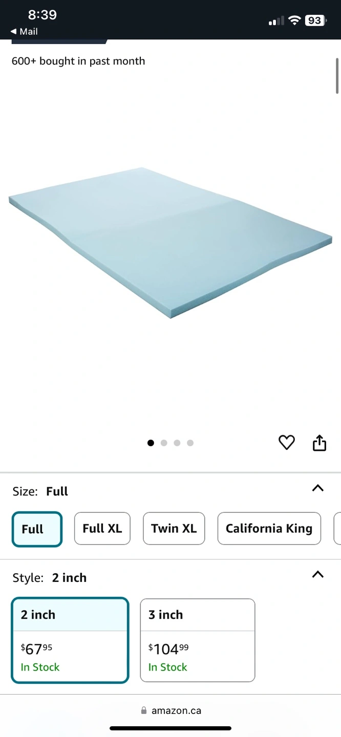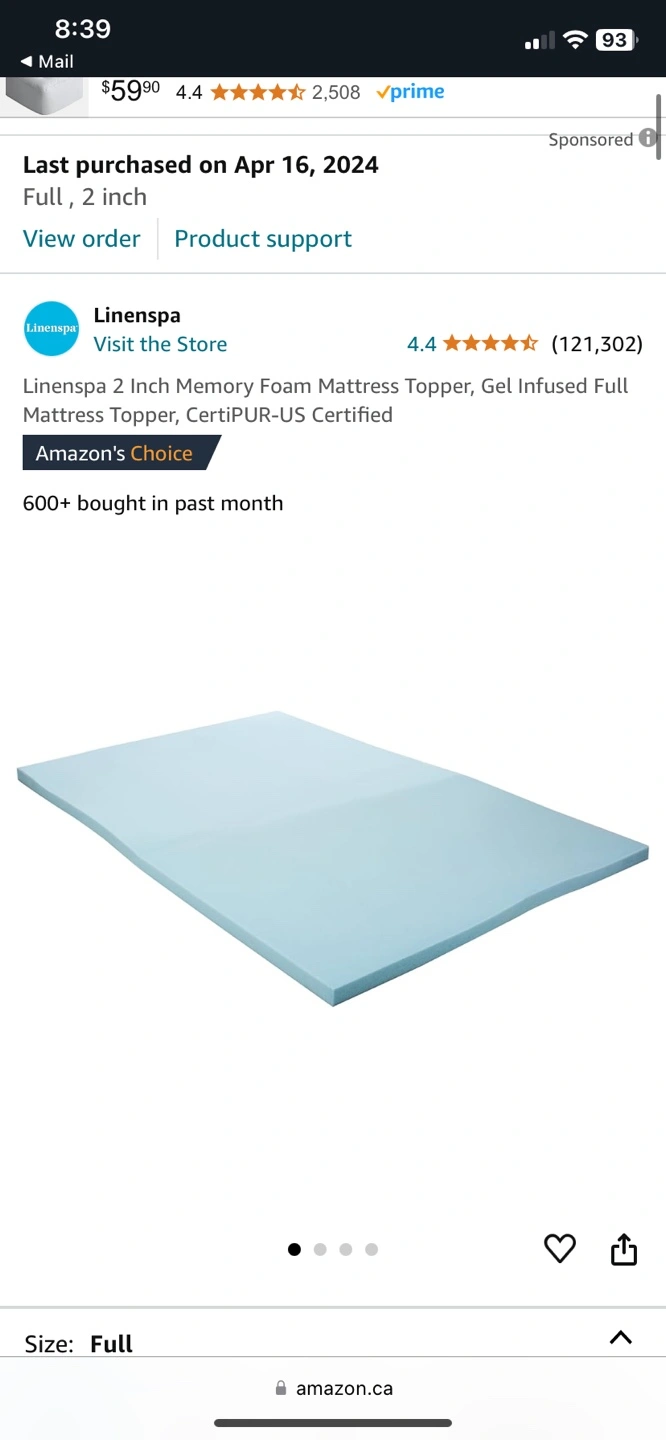 767Full size mattress topper. Gel infused. CertiPUR-US certified. Bought in April this year Selling because I am moving and upgrading my bed size No flaws, great condition and super comfy 🥲 Pickup only