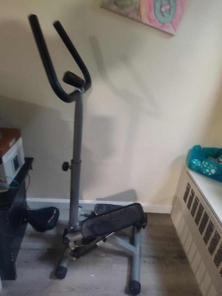 Stepper with handles. Used but still in good condition. Light and easy to move. May need a light wipe down.