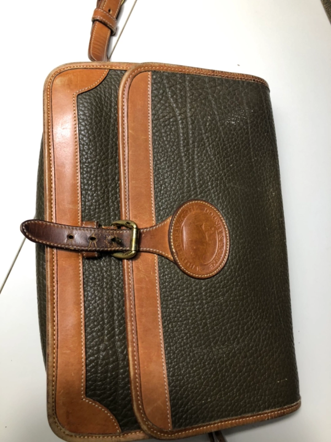 Show allVintage Black Leather With Tan Trim Crossbody Bag