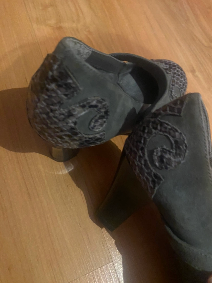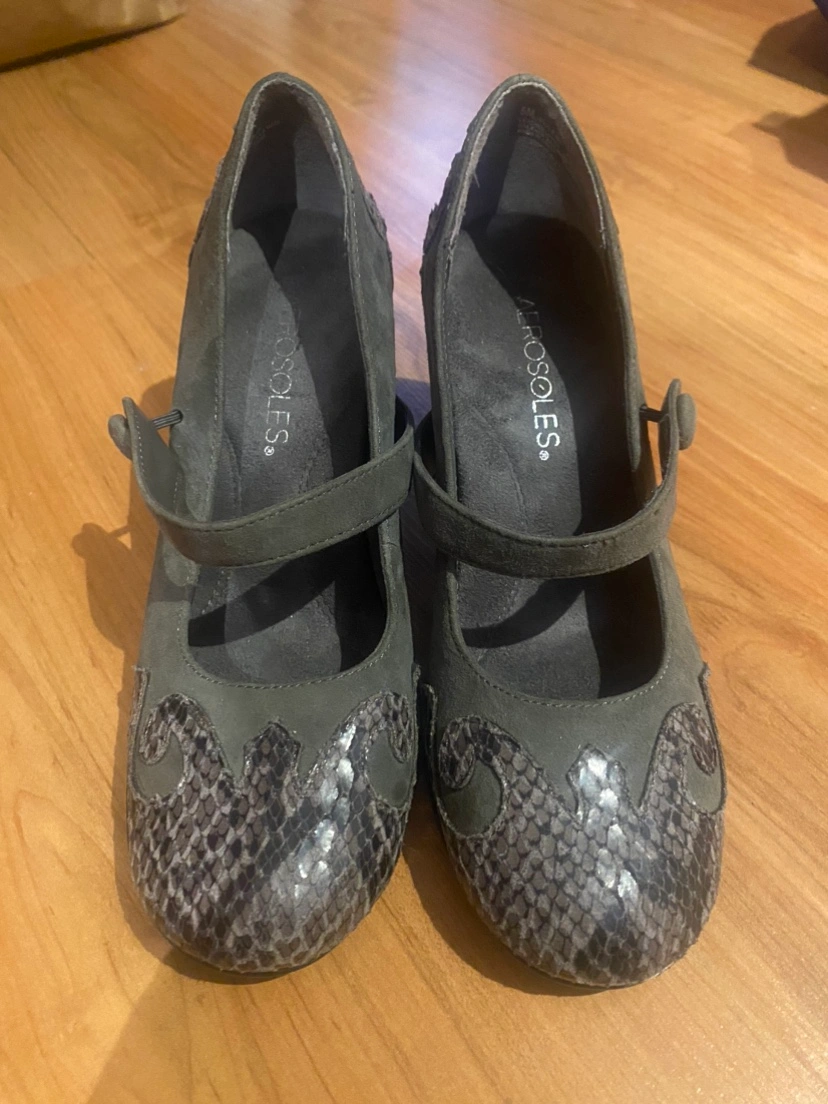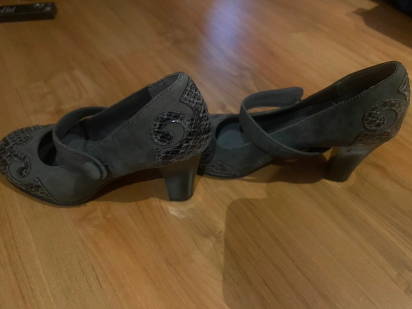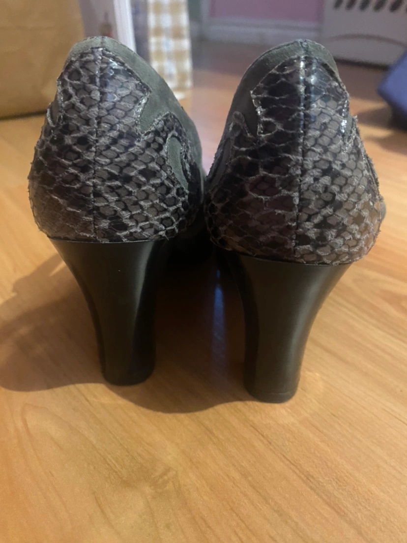 Grey snake colour. Pictures provided shows the condition of the mary jane heels.