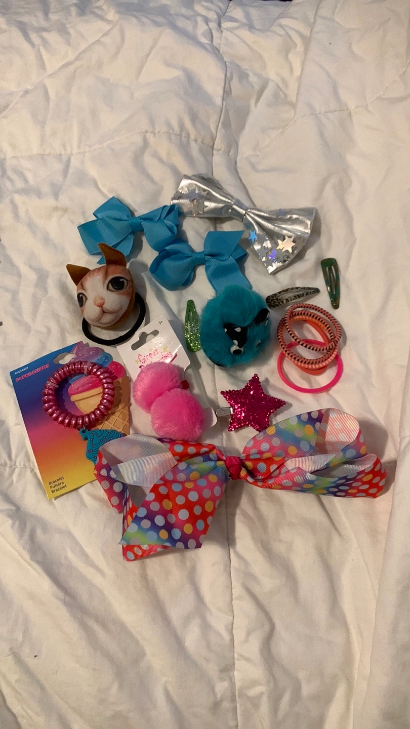 Bundle of hair accessories includes bows, clips, hair ties, and more. Perfect for girls with long or short hair.
