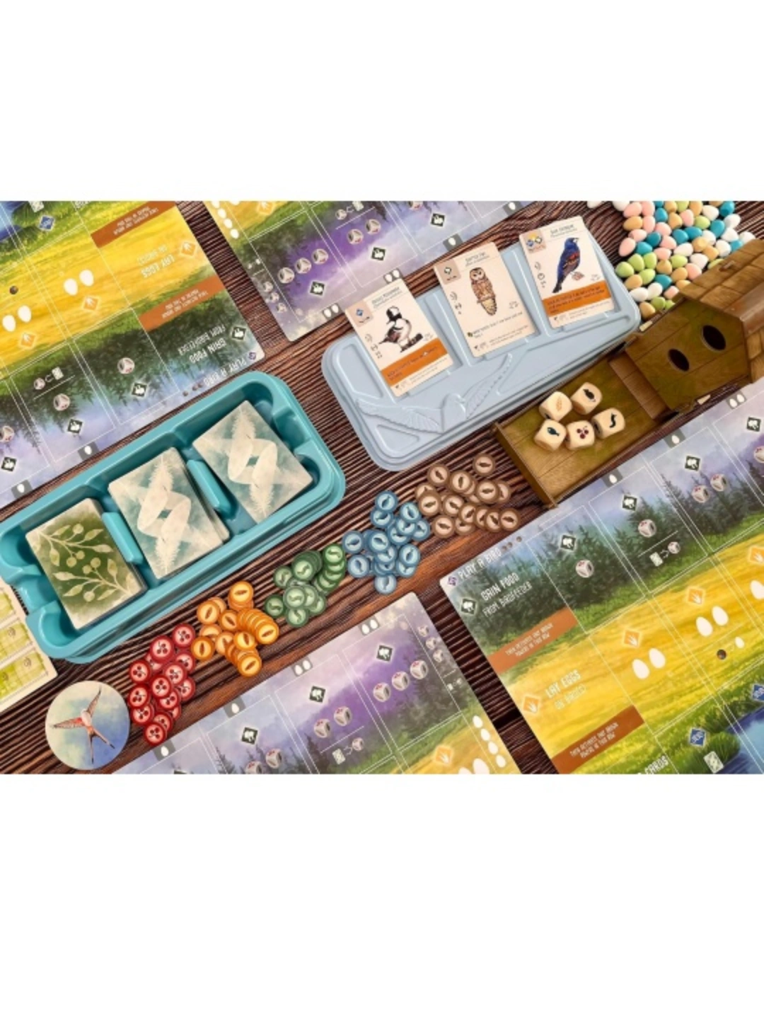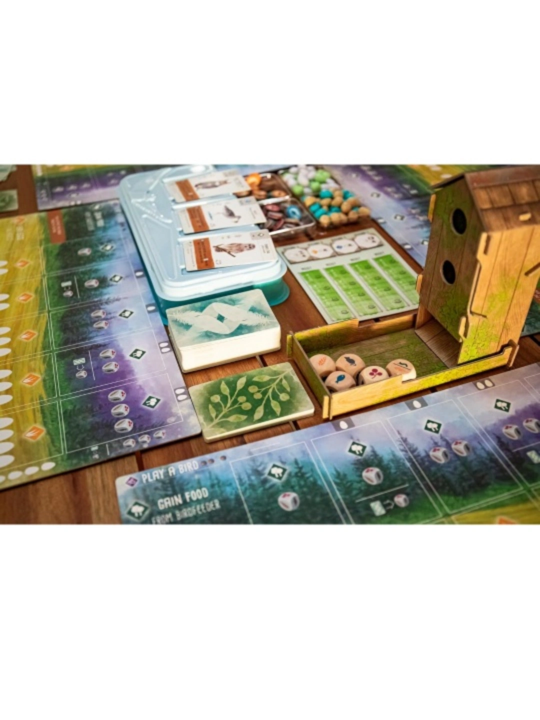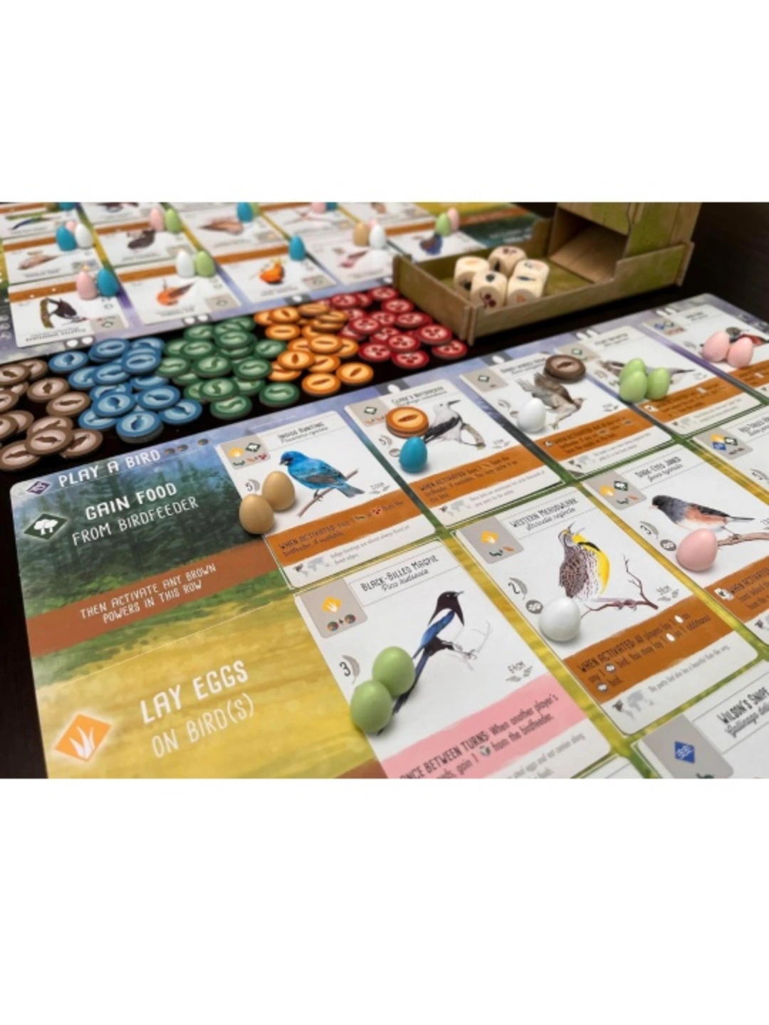 •Each bird extends a chain of powerful combinations in each of 3 unique habitats, as you build your engine to gain food, lay eggs, and draw from 170 uniquely and beautifully illustrated bird cards