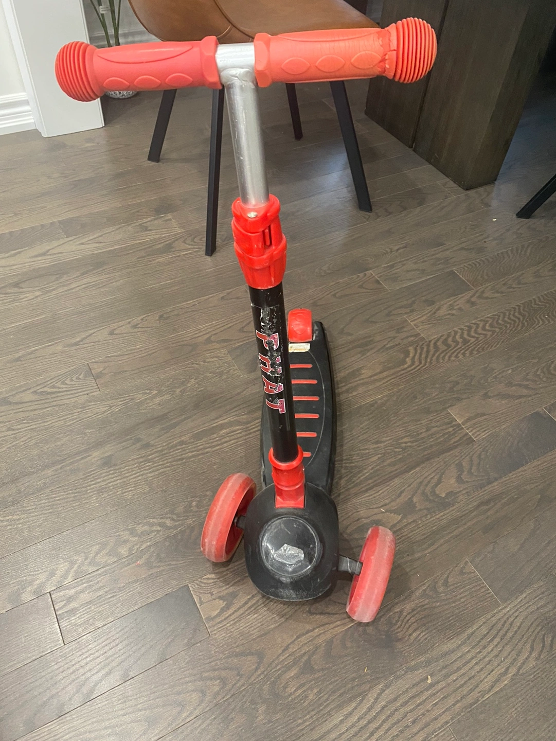 65Giving away Red and black scooter with three wheels. Good for kids. Bought from Amazon 2 years back