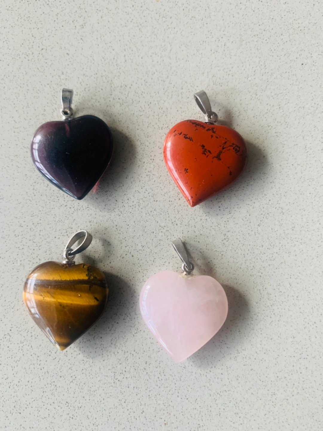 Set of 4 heart shaped crystal pendants. Each pendant has a silver bail for easy attachment to a necklace chain. #giftable