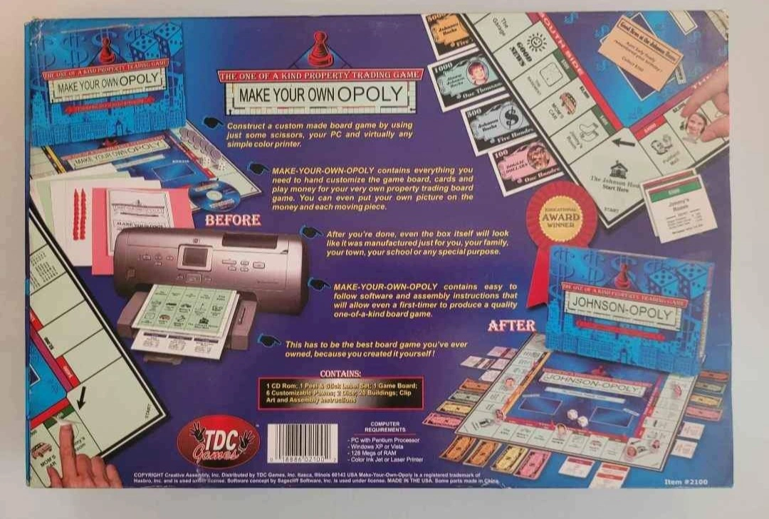The one of a kind property trading game. Custom make your very own board game. Contains operating system, clip art and instructions. 2 to 6 Players. Complete.