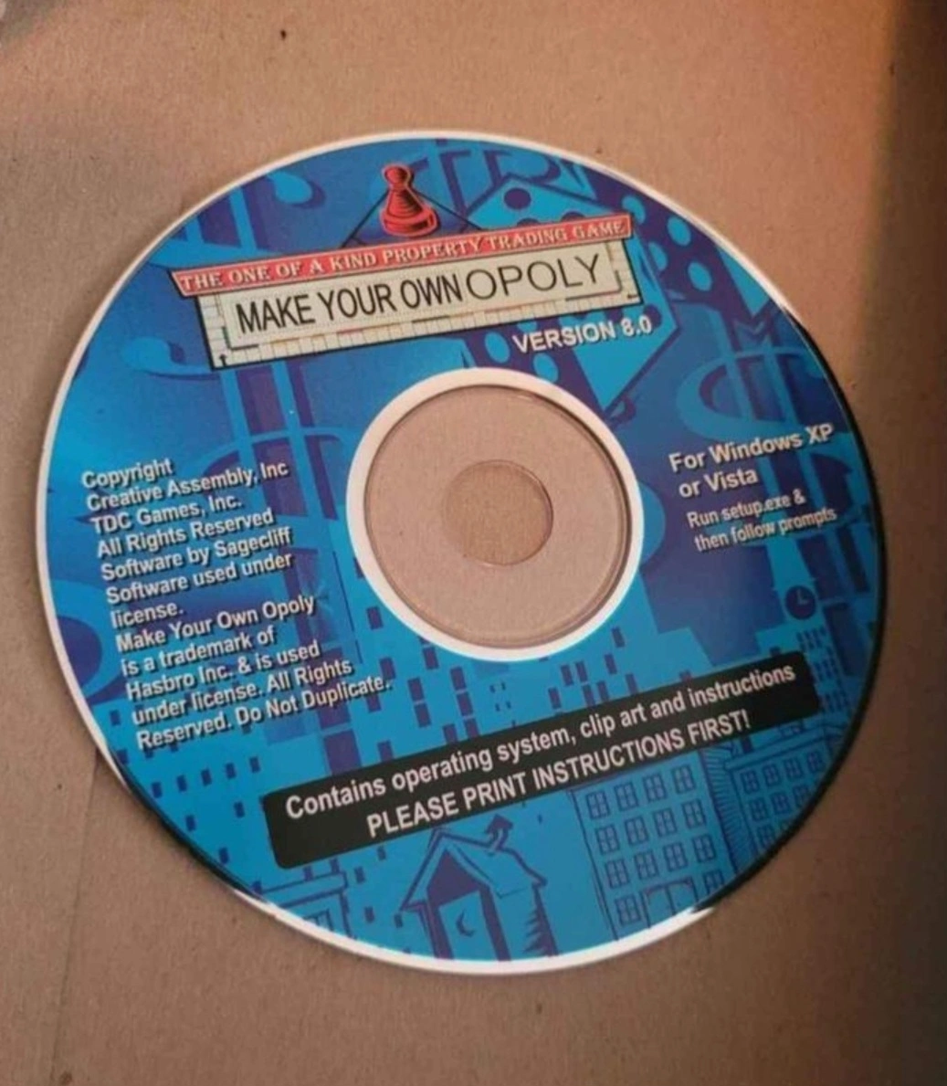 The one of a kind property trading game. Custom make your very own board game. Contains operating system, clip art and instructions. 2 to 6 Players. Complete.