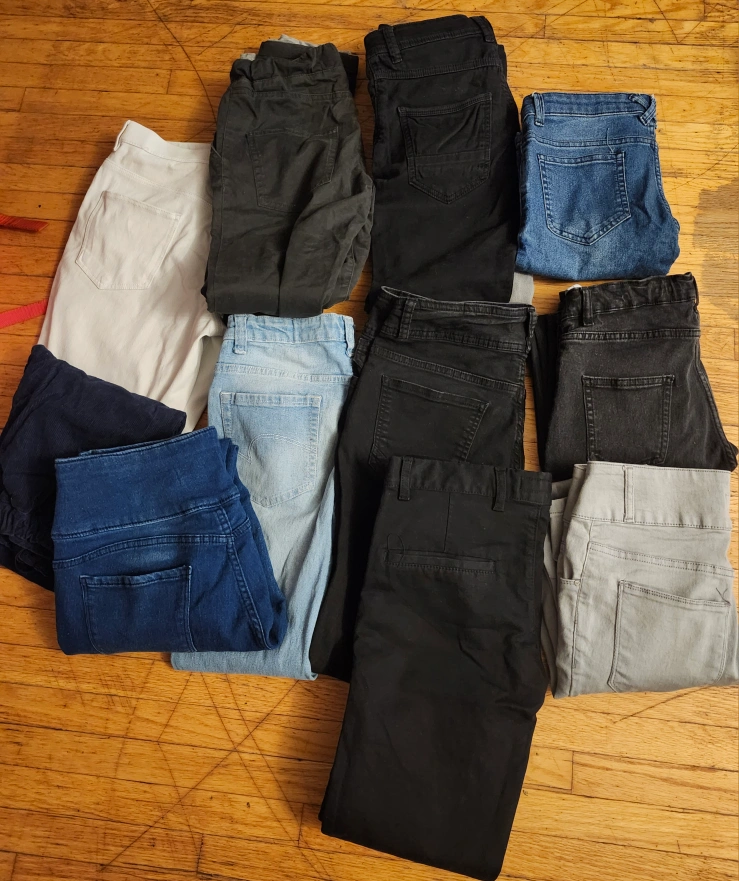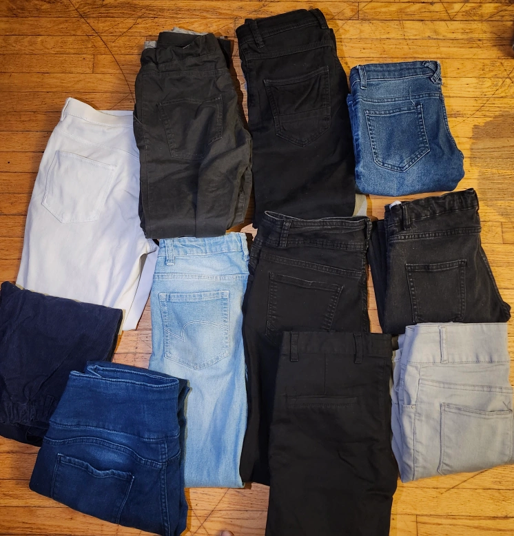 kids jeans in various colours and styles. Size varies, mostly 11-12 and 10-11