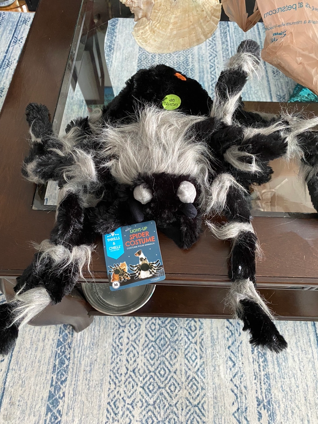 Black and grey spider costume for pets. Size Medium brand new bought it 25$plus taxes but selling half price .
