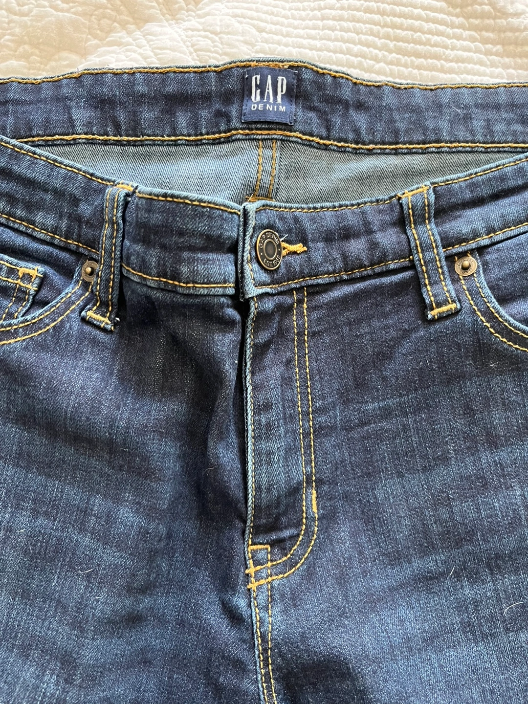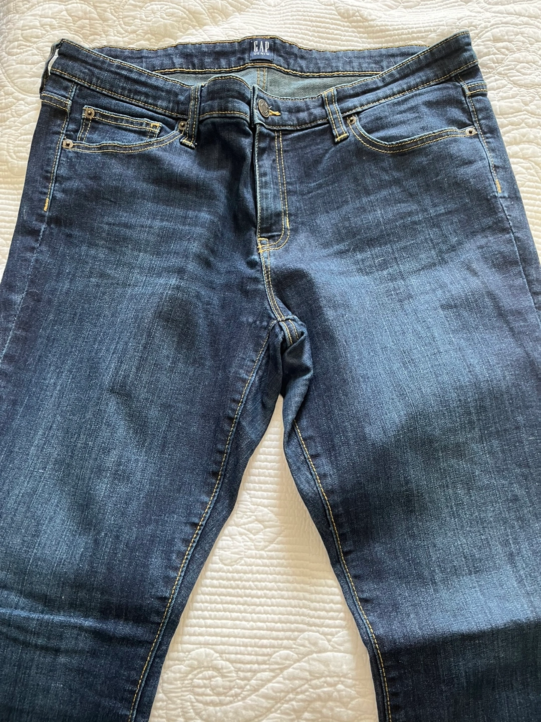 Dark wash, slim fit jeans. Regular rise, legging style. Gap Size 32(12)