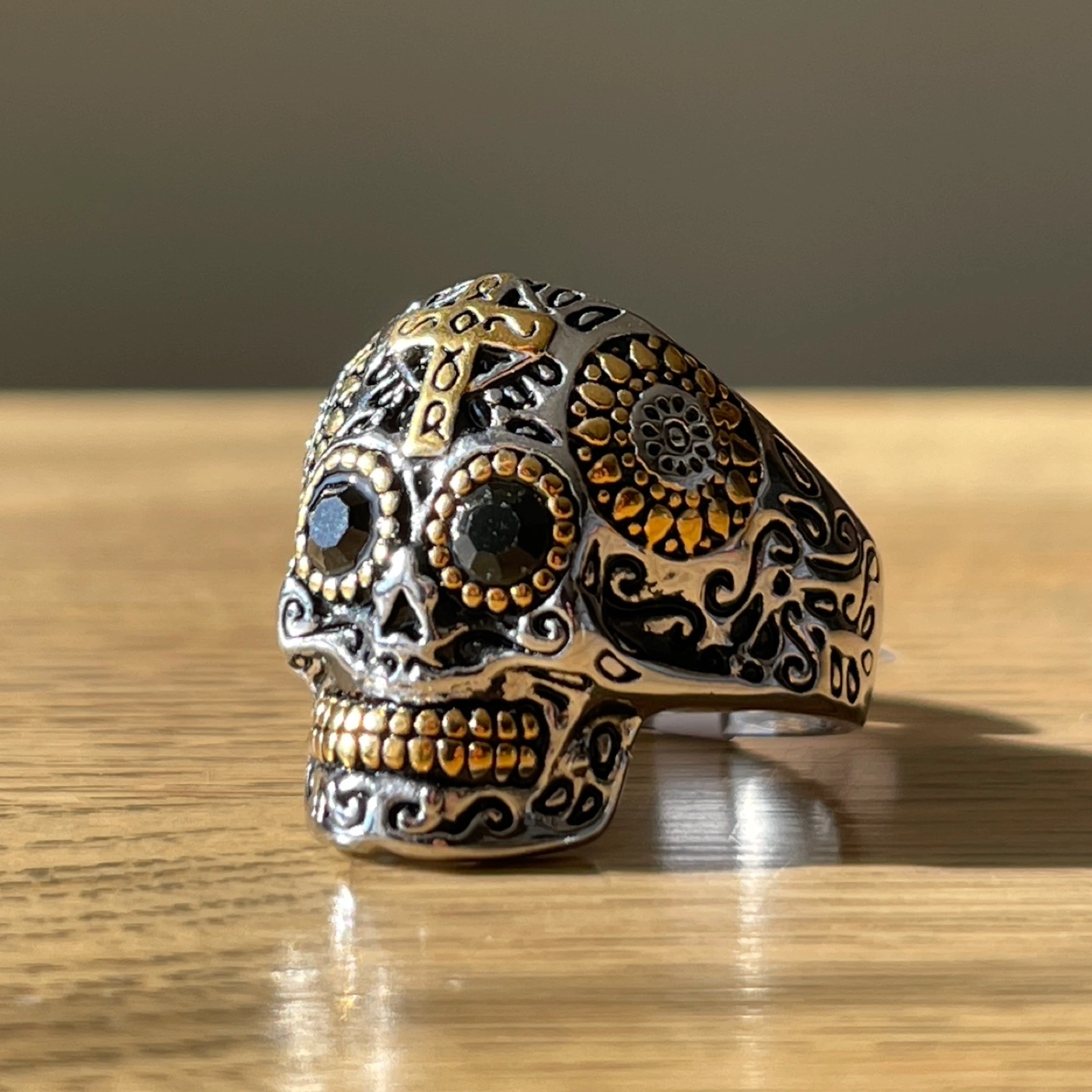 Golden & silver colour skull in high quality titanium ring.