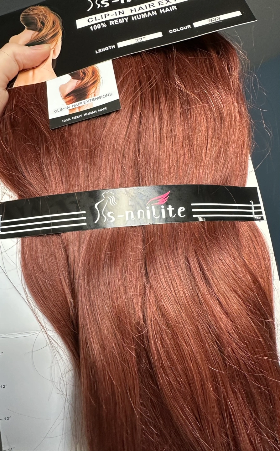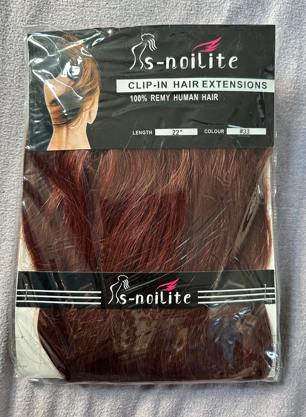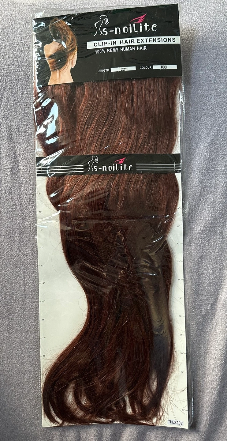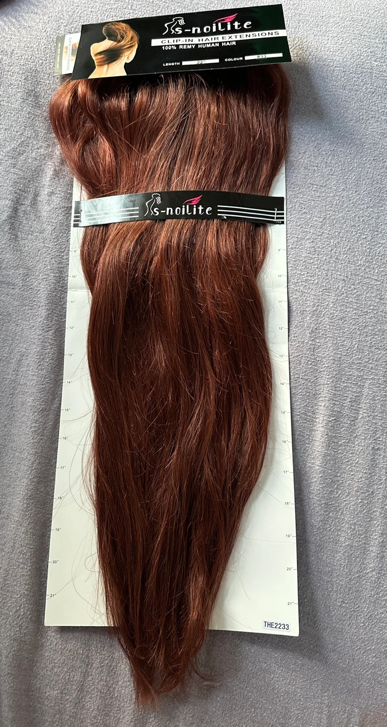 55622" clip-in human hair extensions. Colour #33. I bought these for my wedding day but ended up not using them and wore my hair up. Pu downtown Toronto Lake shore and Bathurst
