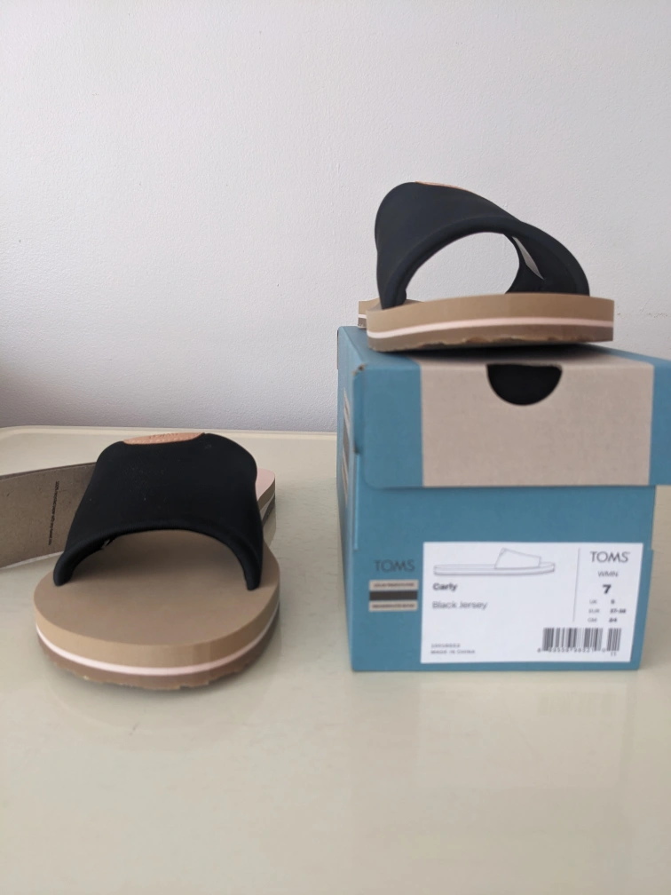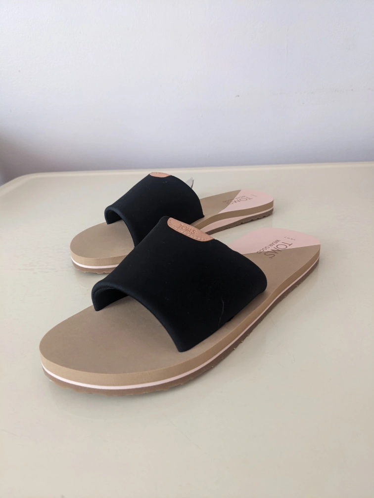TOMS Carly Black Jersey Slides Size 7