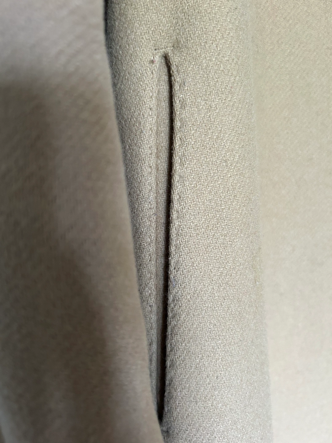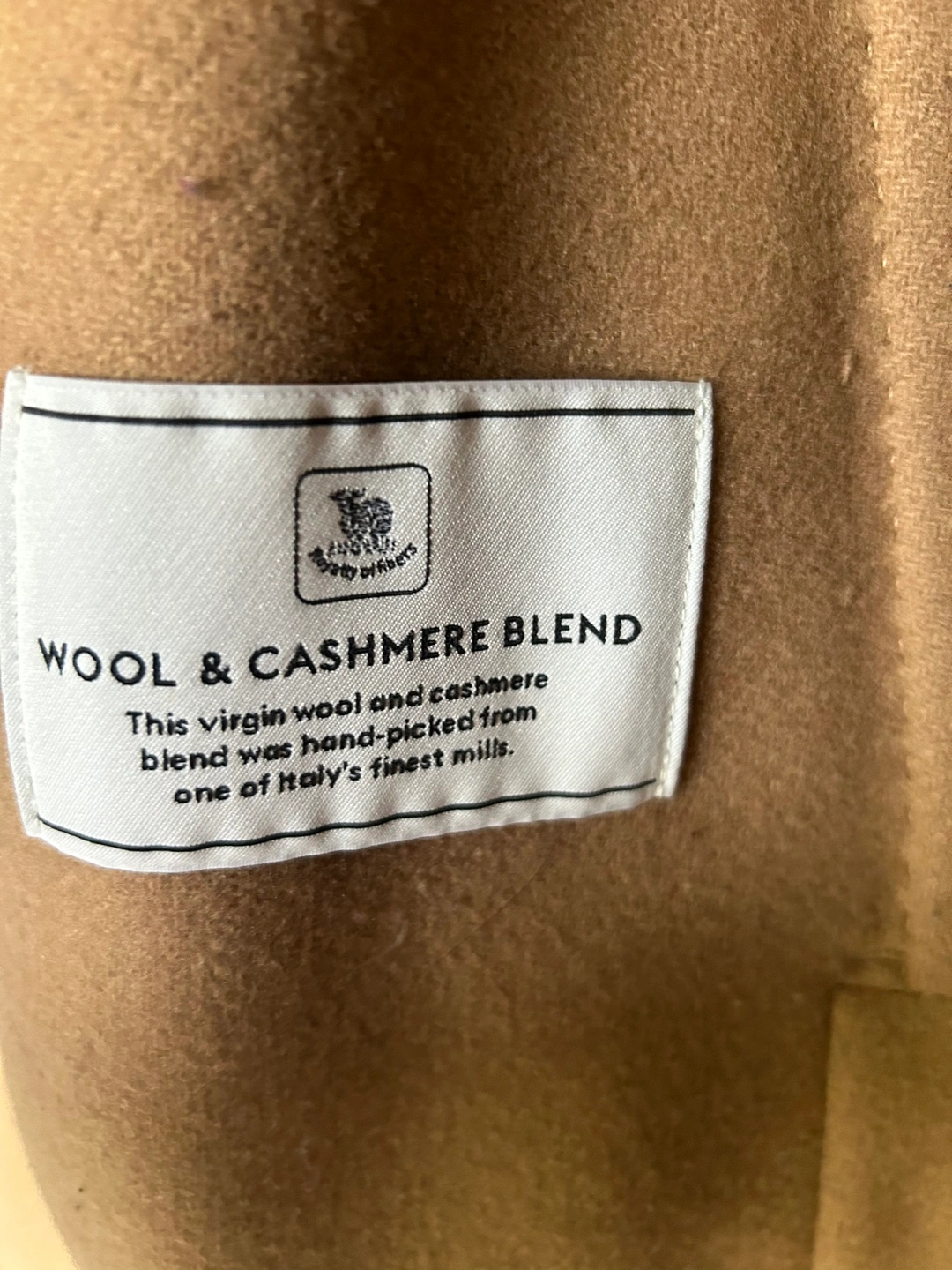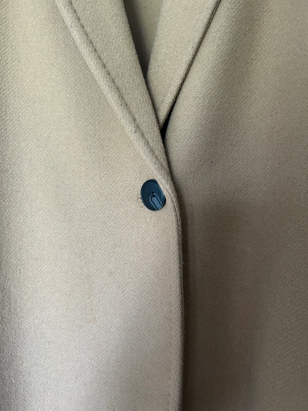1000+Long camel wool coat with a single button closure. Has two pockets on the sides. Excellent condition.