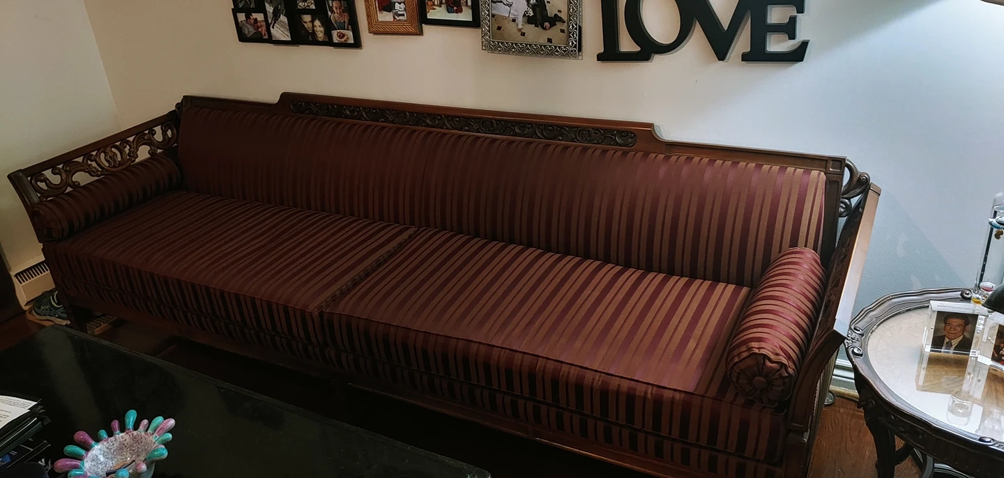 105 inch long silk and hand carved hard wood sofa with club chair