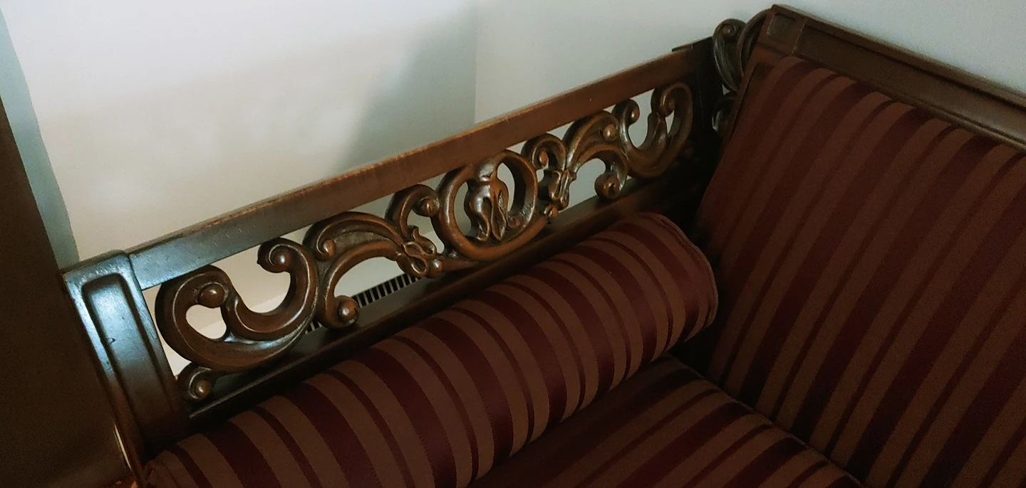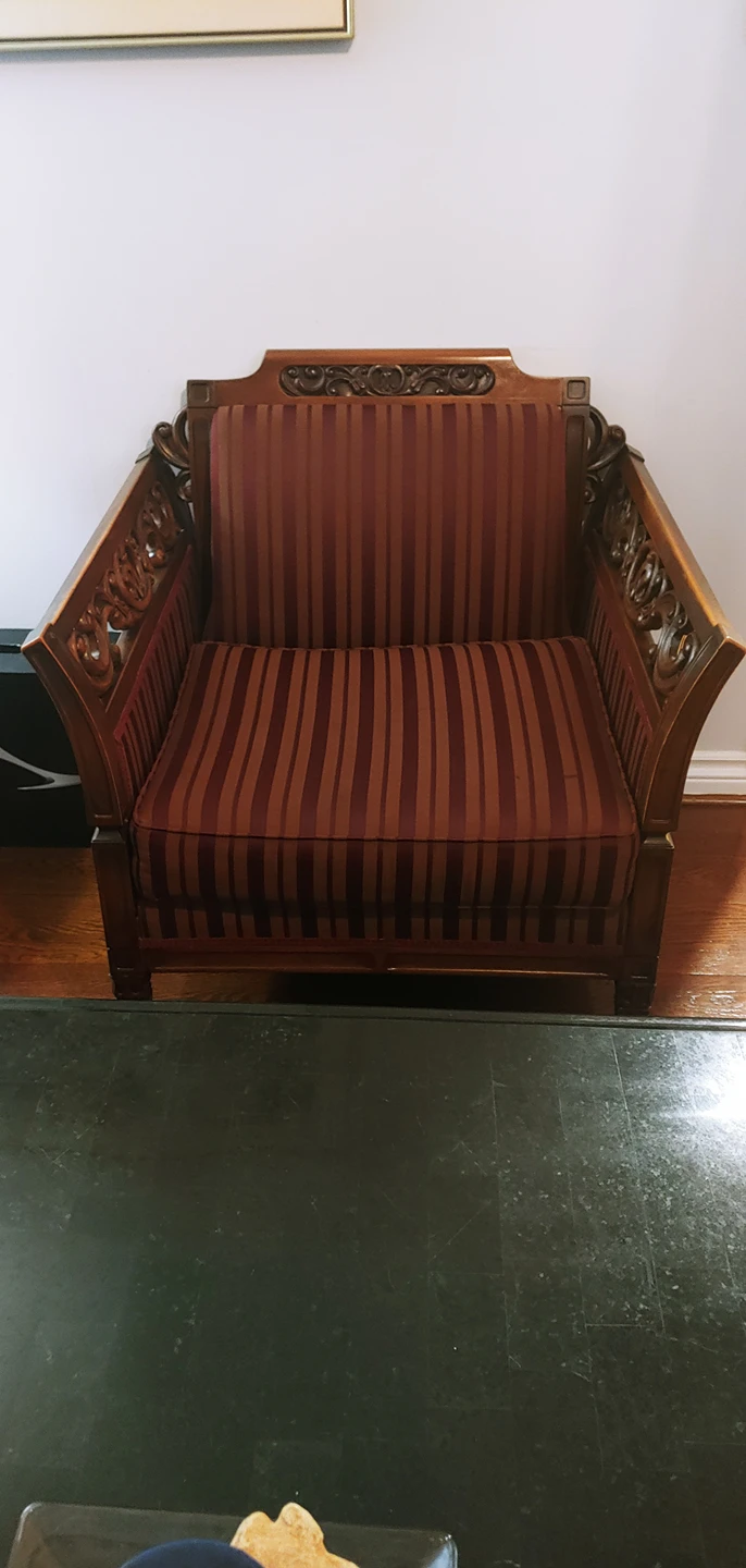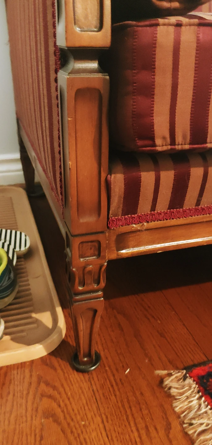 Purchased in the sixties made in Quebec. Owned by same family through out. This is the third reupholstering.