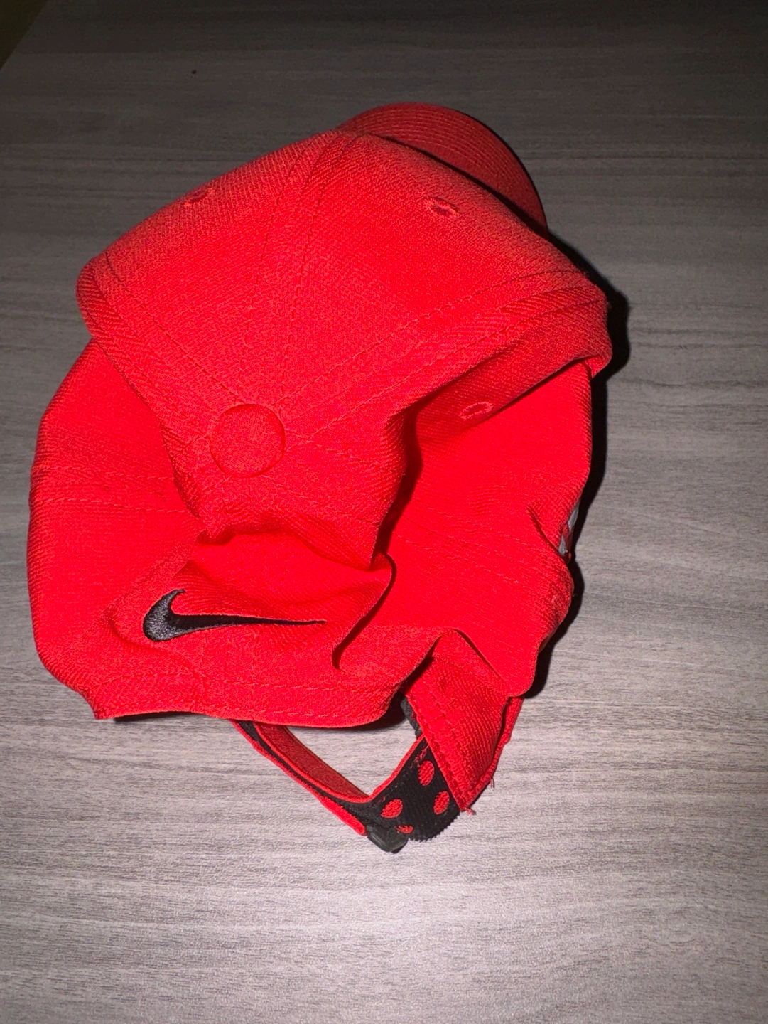 60Red baseball cap. Adjustable. Great for everyday wear.