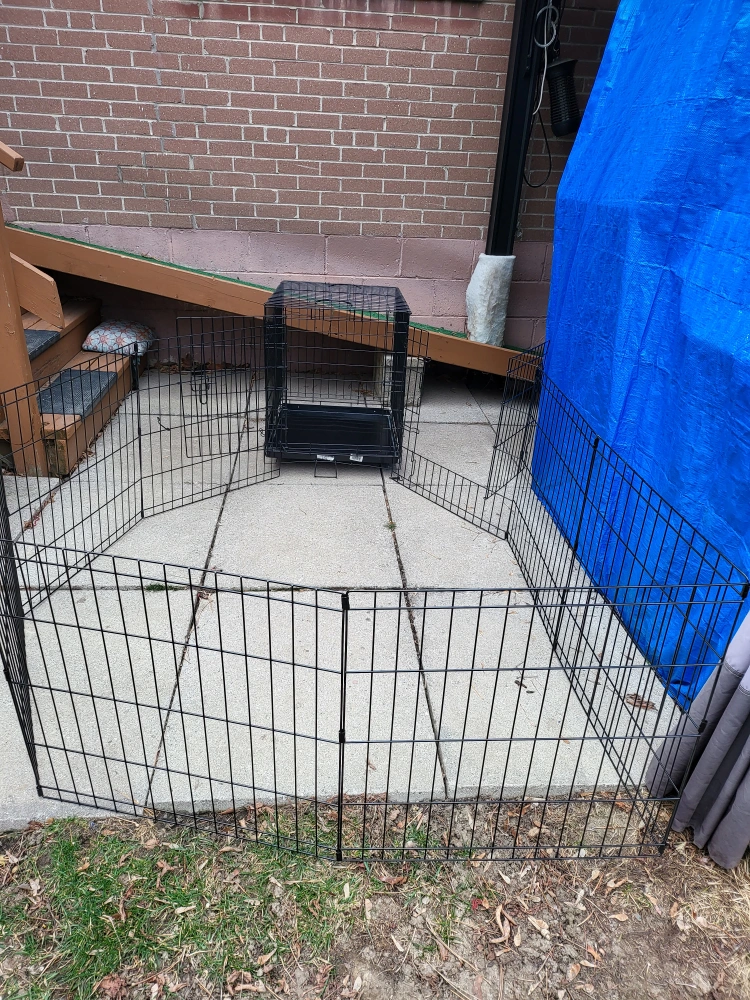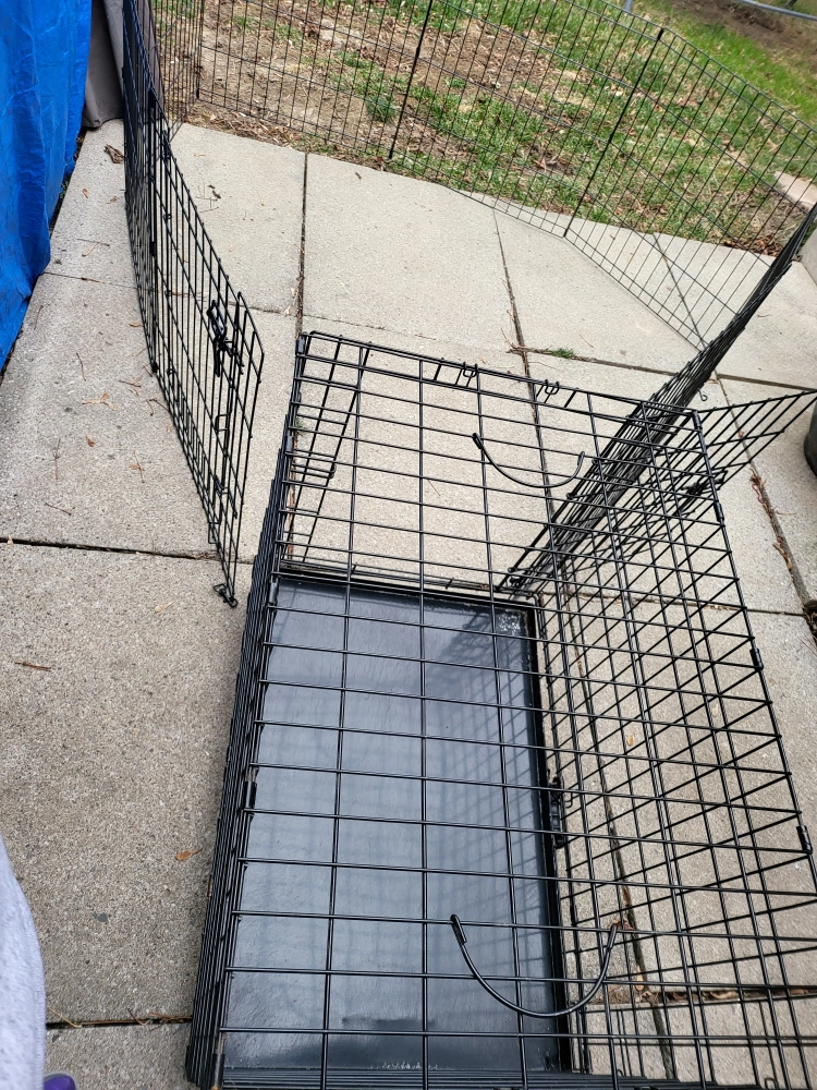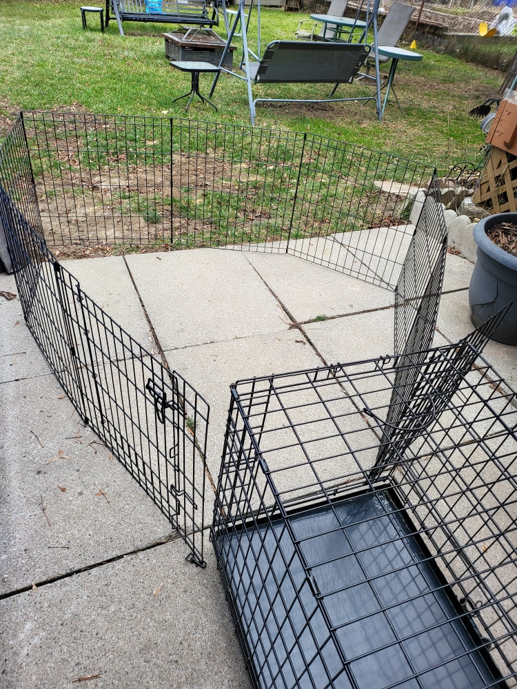 Dog, rabbit or guinea pig crate and playpen. Crate comes with a removable tray. Both items are in good condition. this would be good for rabbits or guinea pigs to tray is metal with edge on it so shavings don't not fall out