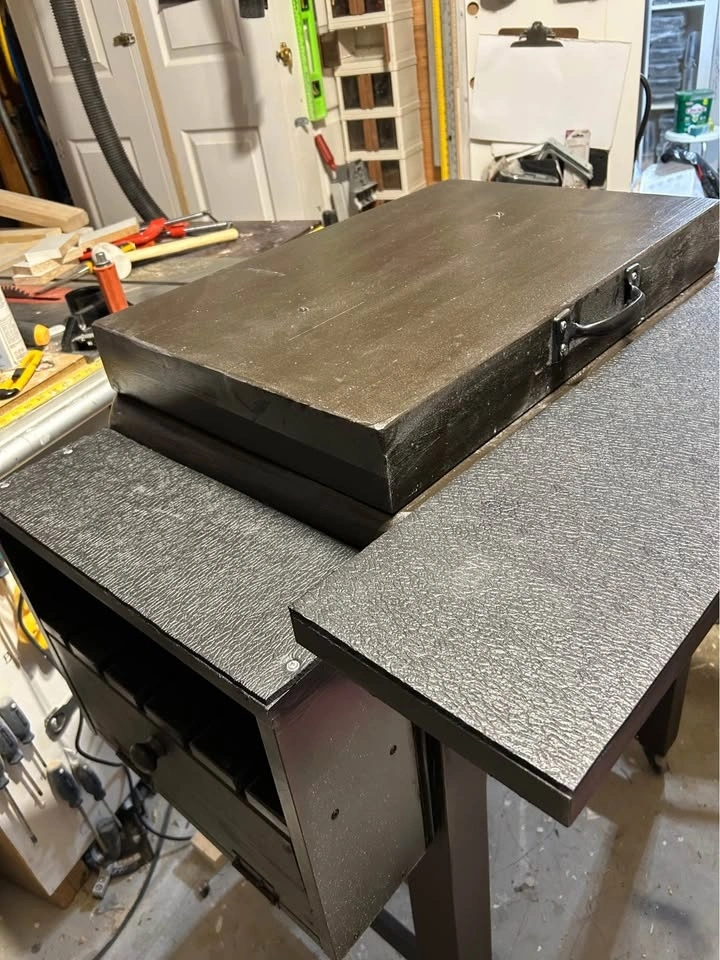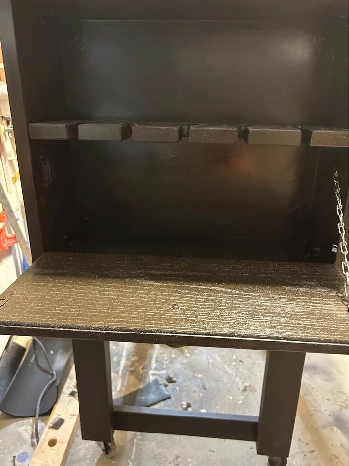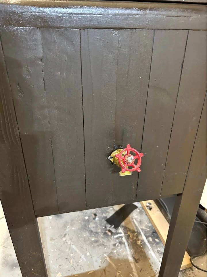 Just made this one to see if it is worth making and selling. Great for a man’s cave or beside your bbq. Next one will be stained wood, but this has to go first. No room in my garage. Has place for wine and other glasses.