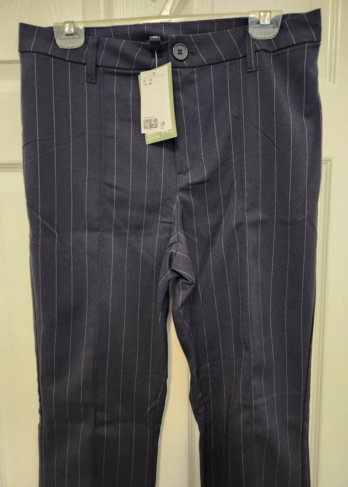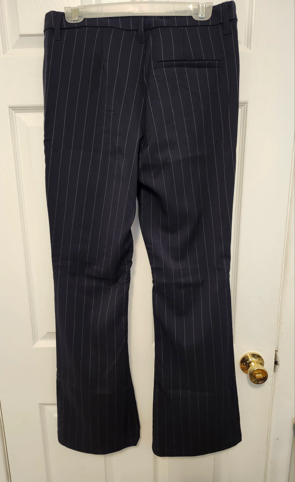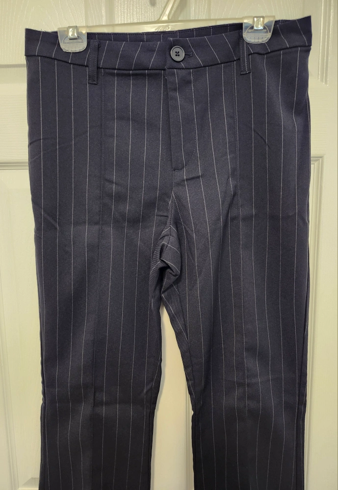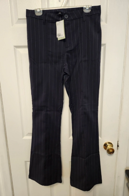 Navy Blue pinstriped flare pants. New with tags. Bought online and never used.