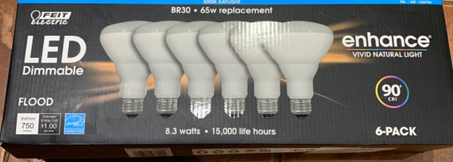 Feit Electric LED BR 30 Light bulb provides up to 88% energy saving by replacing 65w with 8.3W; replace your old incandescent bulbs for a brighter and more energy-friendly home.