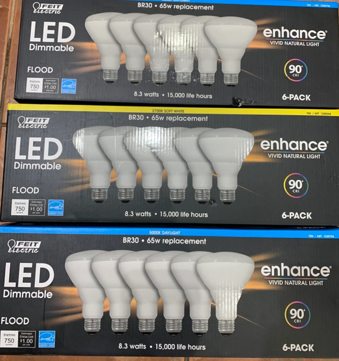 3 Boxes of 6 Light Bulbs Each