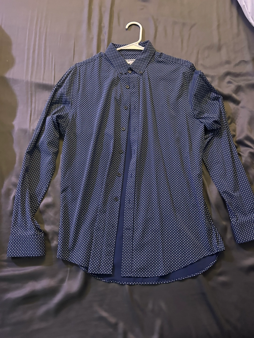 Long sleeve button down shirt with a pattern.