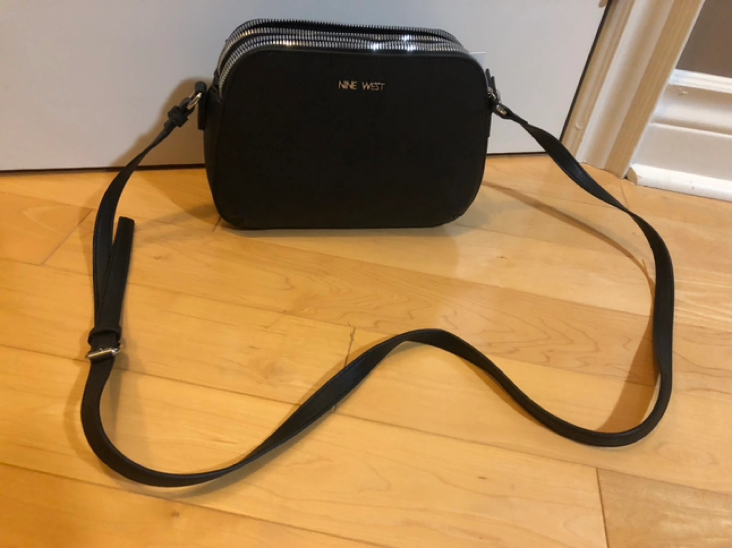 Black crossbody bag with two zipper compartments. Adjustable strap. Pick up @ midtown, cash only🤗