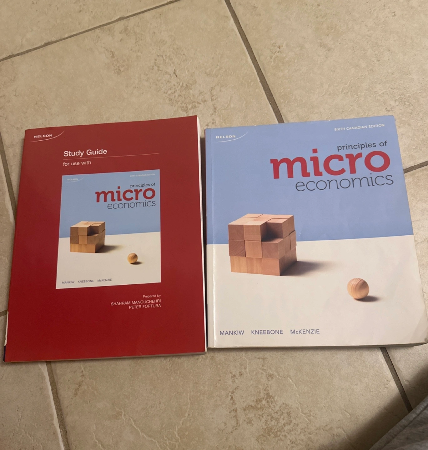 Study guide for use with Principles of Microeconomics, sixth Canadian edition. Prepared by Shahram Manouchehri and Peter Fortura. - one study guide - one text book 6th edition microecon.