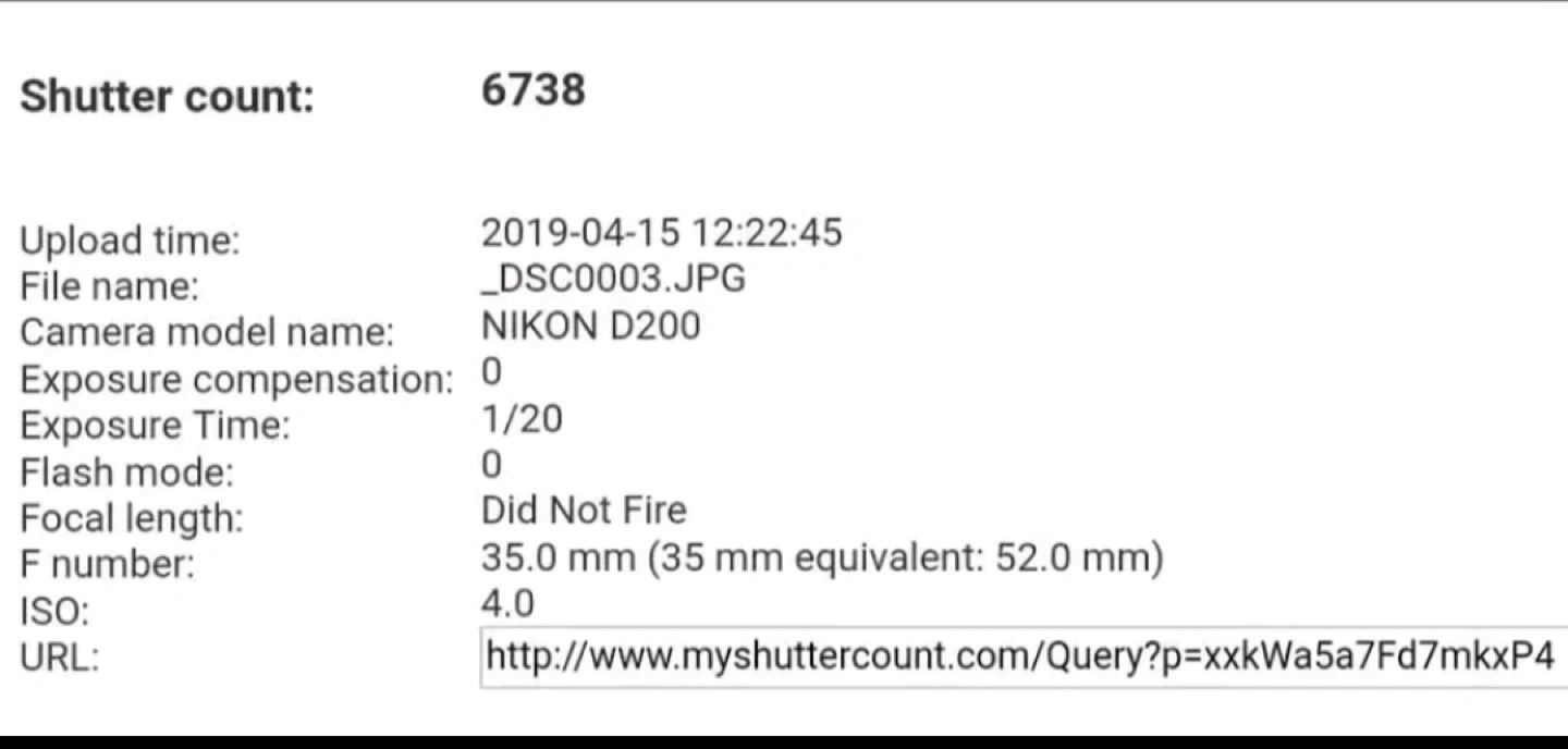 Tons of life left at only 6738 actuation's on the camera.