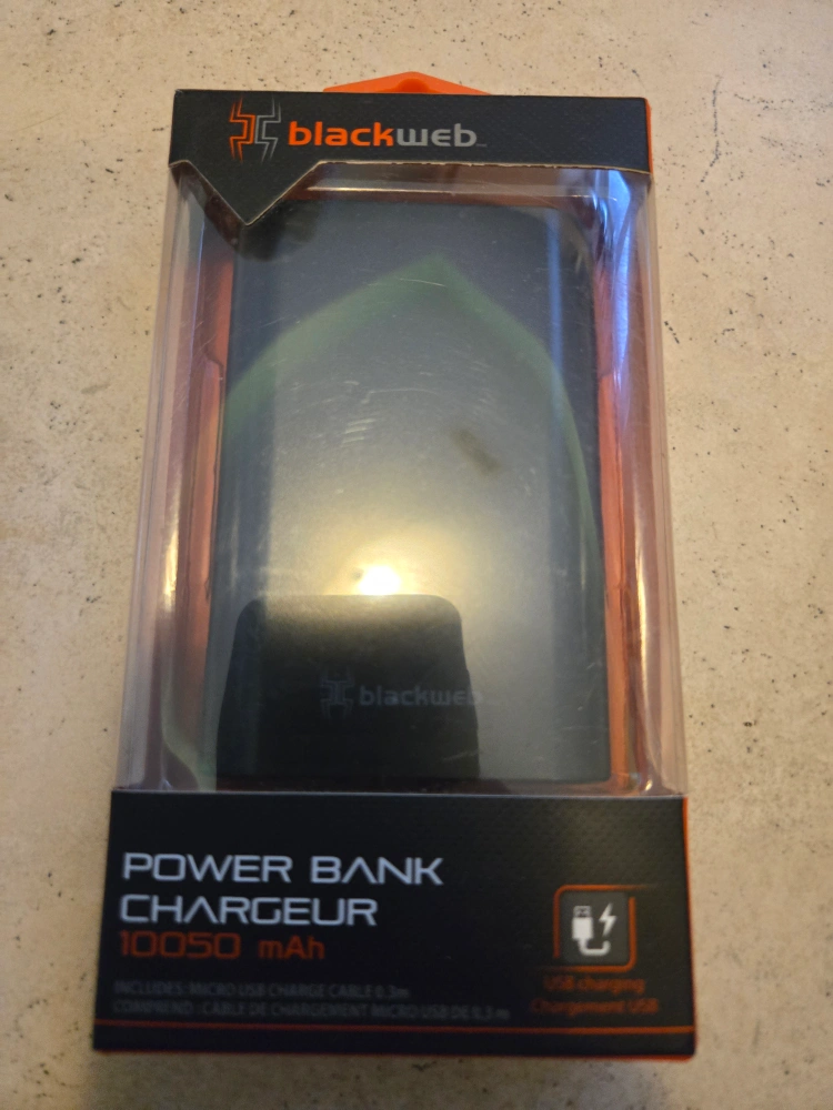 New in sealed box BlackWeb Power Bank Charger. Compact, portable design. High capacity rechargeable Lithium ion battery. Charges most mobile and digital devices.