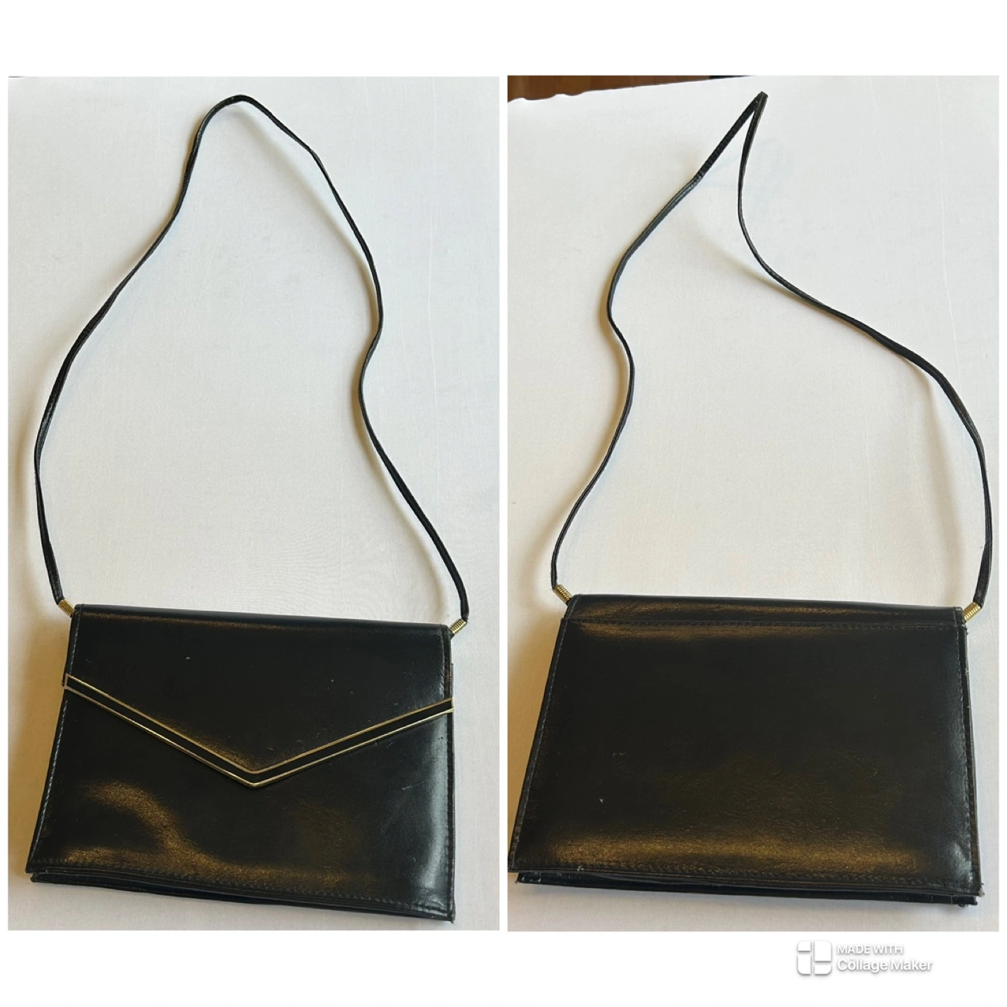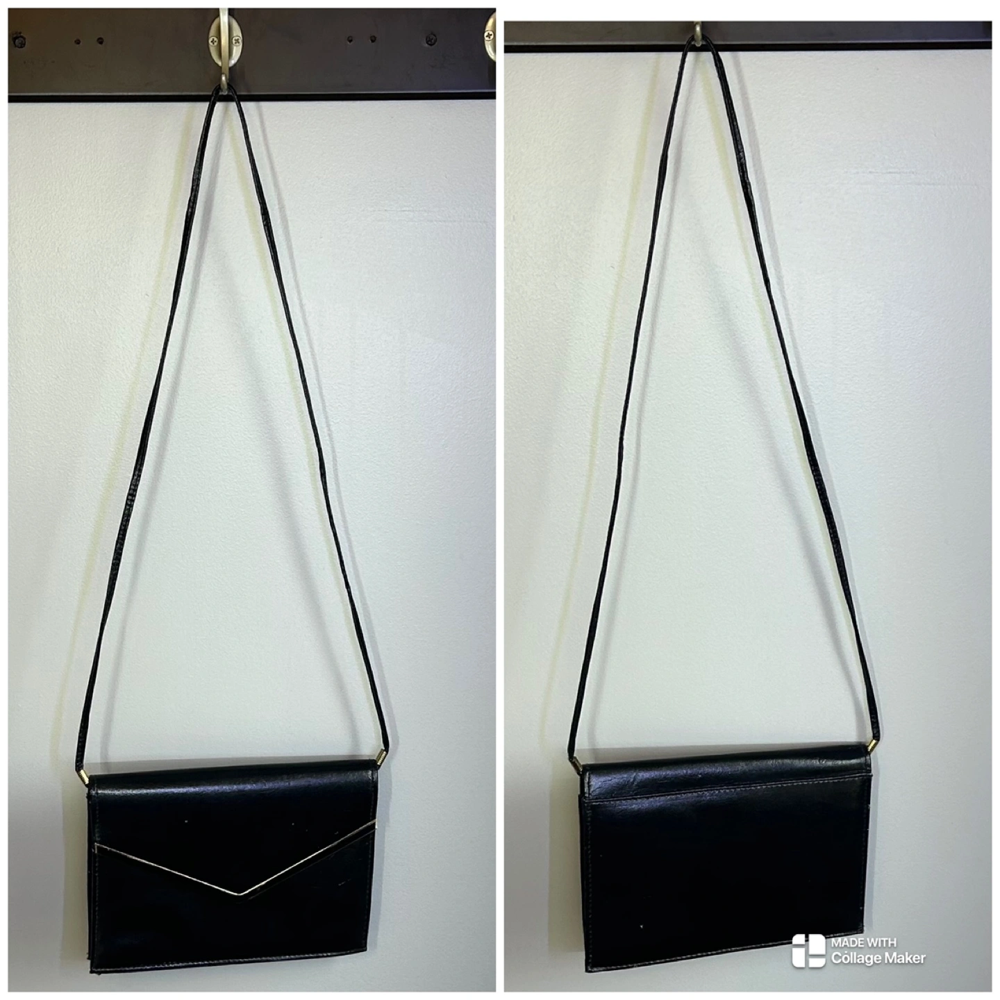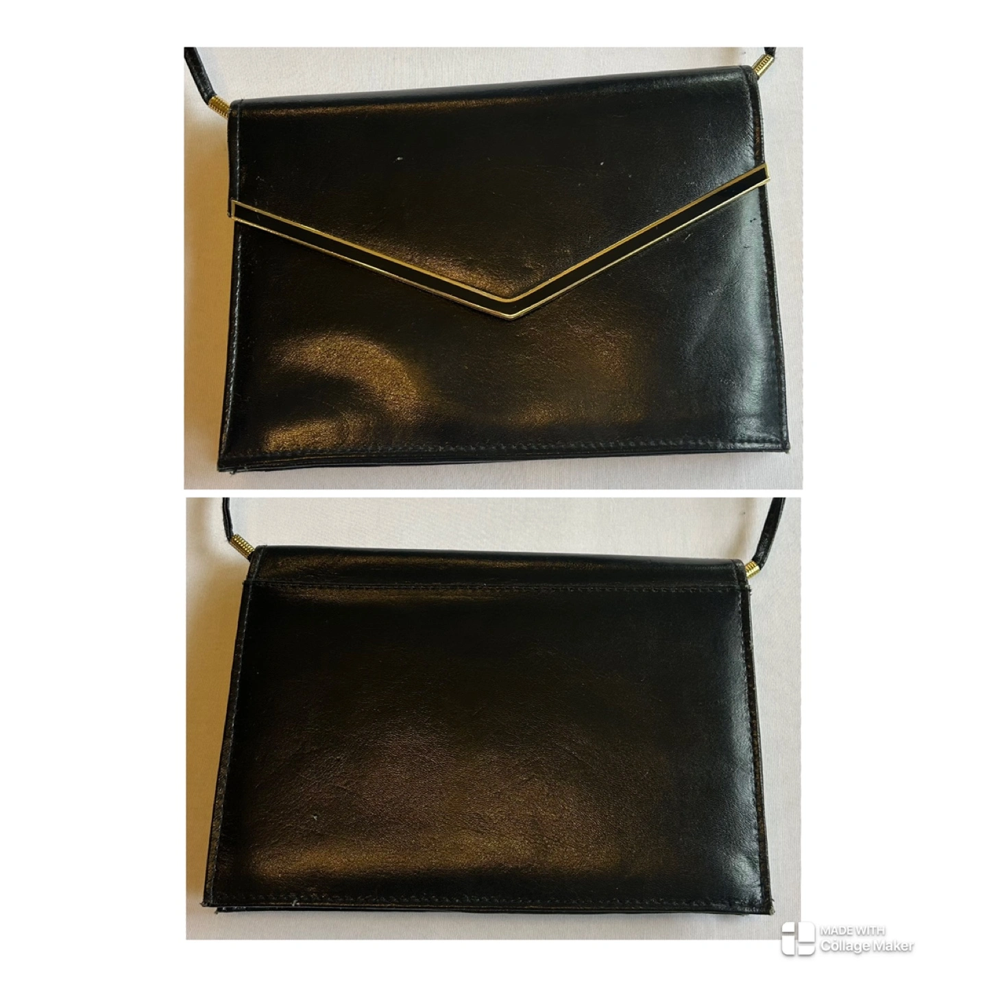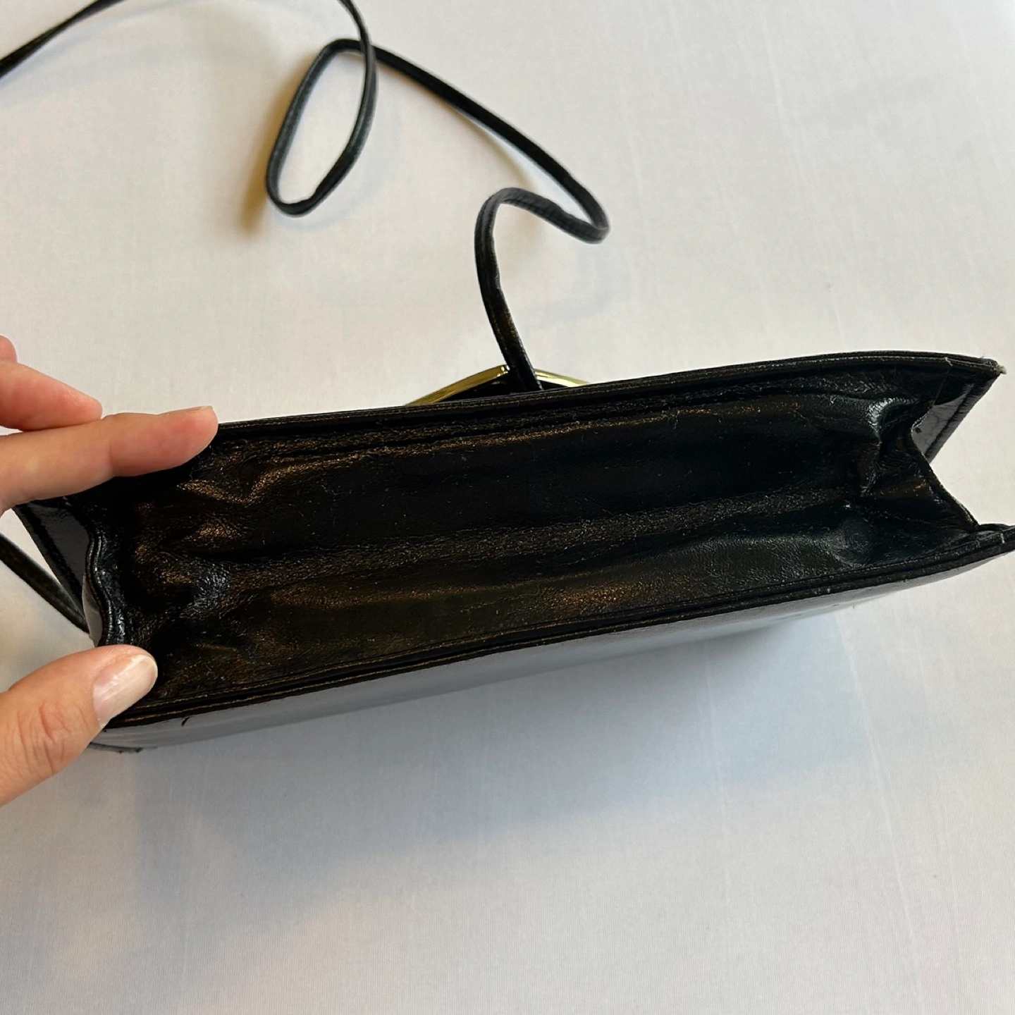 Glossy Black Patent Faux Leather Crossbody Purse Gold Accent