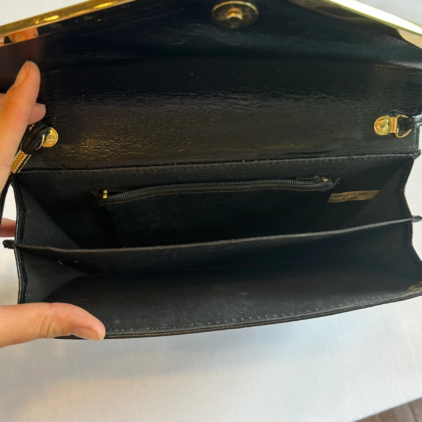 Material: Faux Patent Leather with Metal Gold Accent