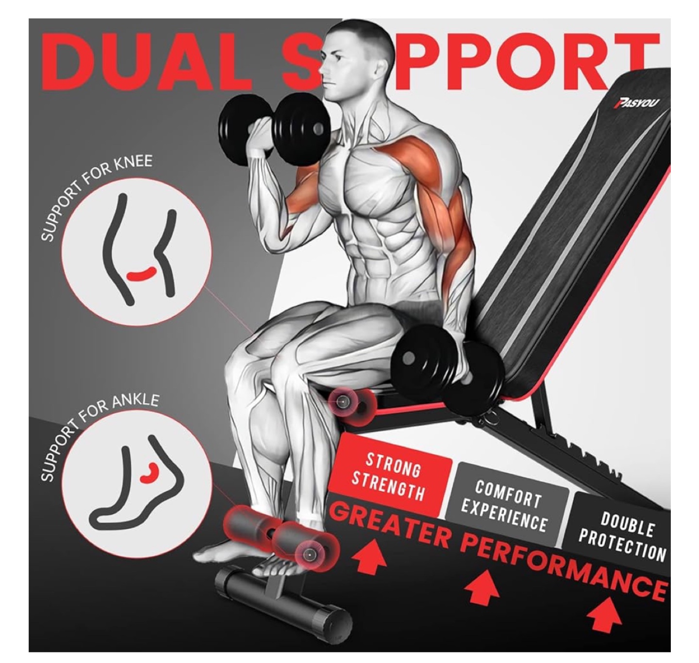 PASYOU Adjustable Weight Bench Full Body Workout Multi-Purpose Foldable Incline Decline Exercise Workout Bench for Home Gym