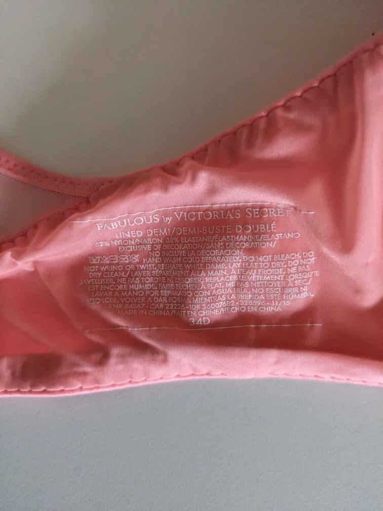 Peach color Victoria Secret padded bra, size 34D