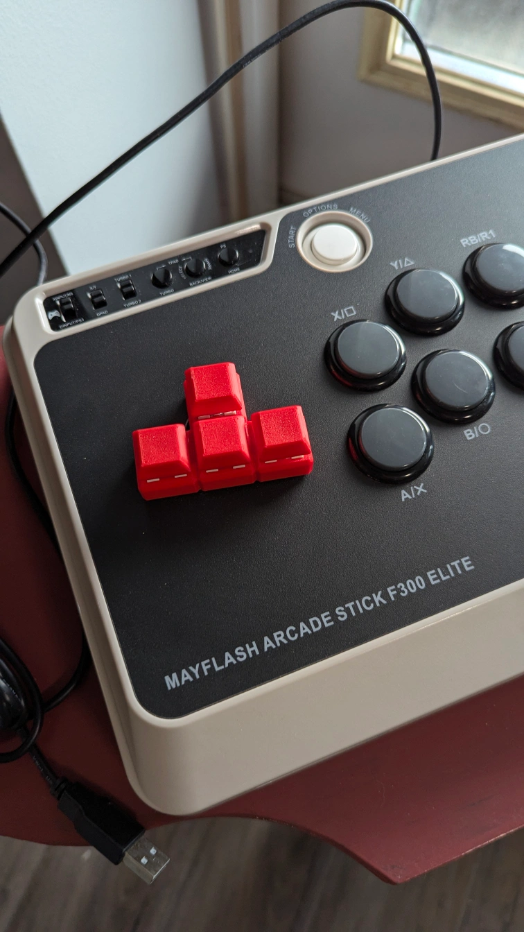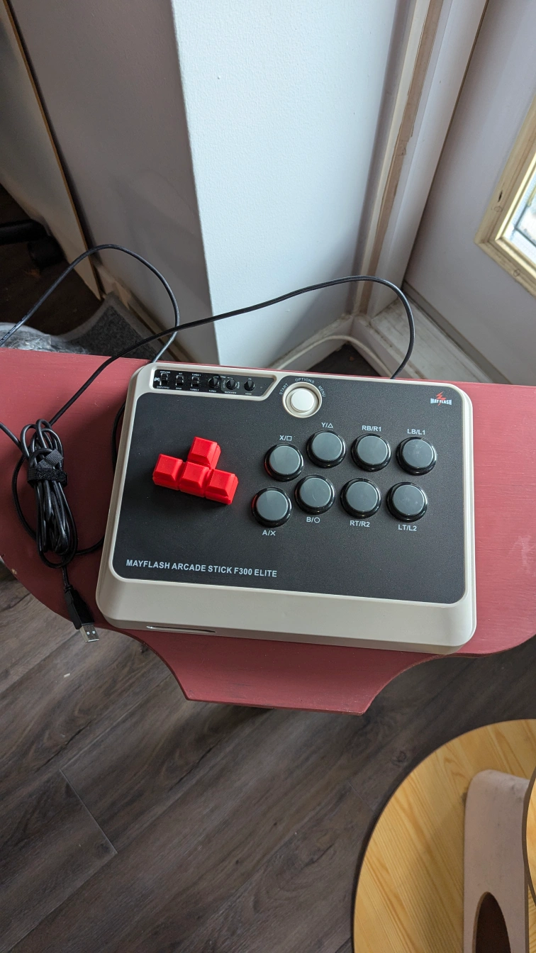 MAYFLASH F300 Elite Fight stick with joystick replaced with 4-button directional keys due to preference.