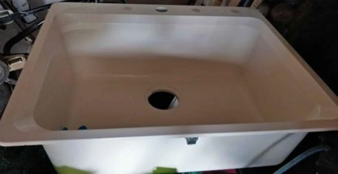 New, beige color sink . Fits into opening 19 3/4" L x 22 3/8" width , lip of 1/2" on two side and front lip 3/4" and rear lip is 3/8".