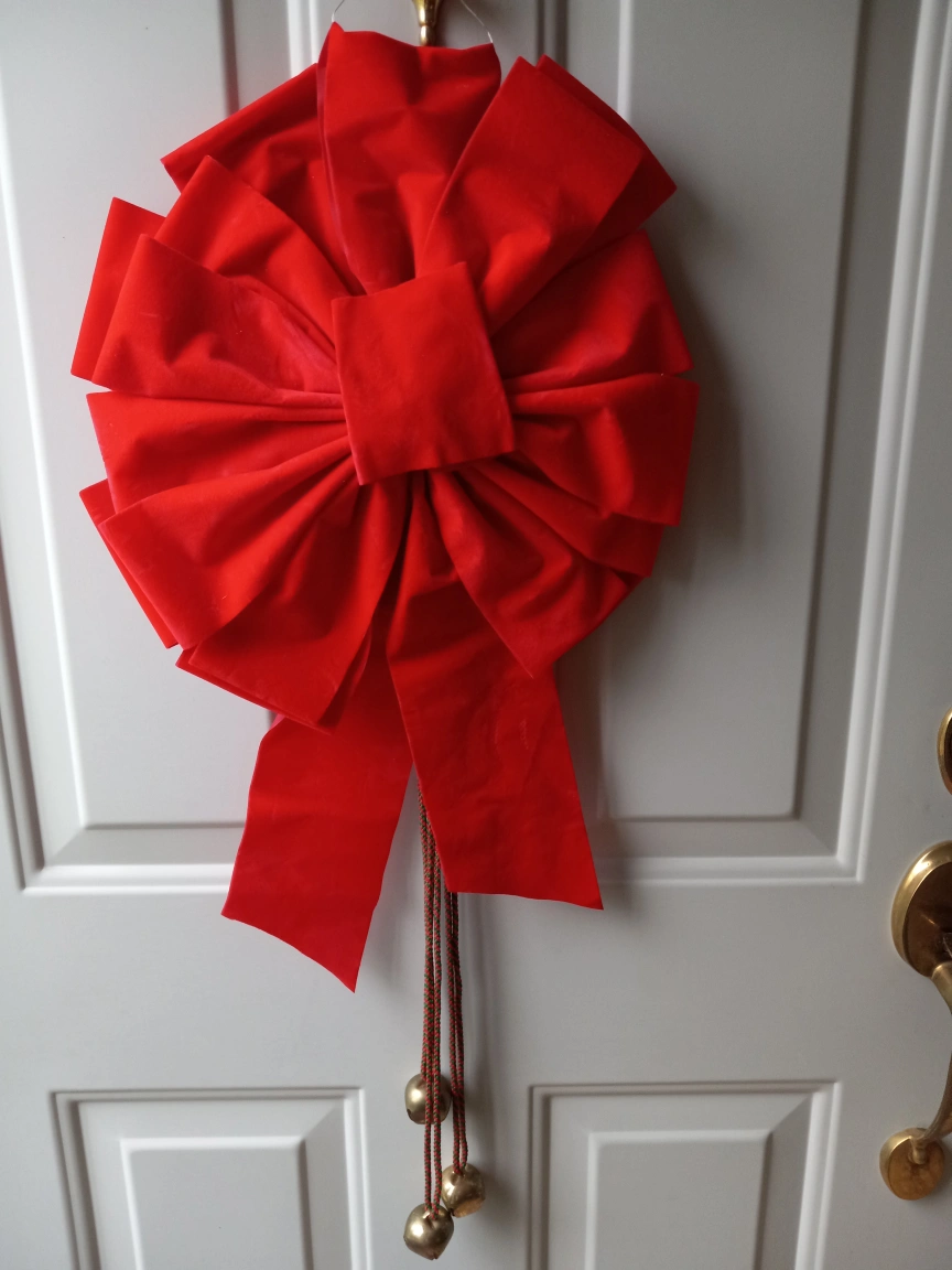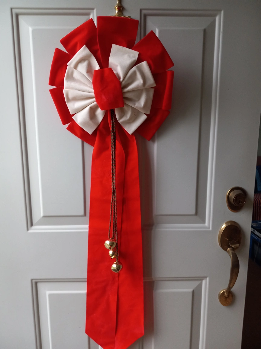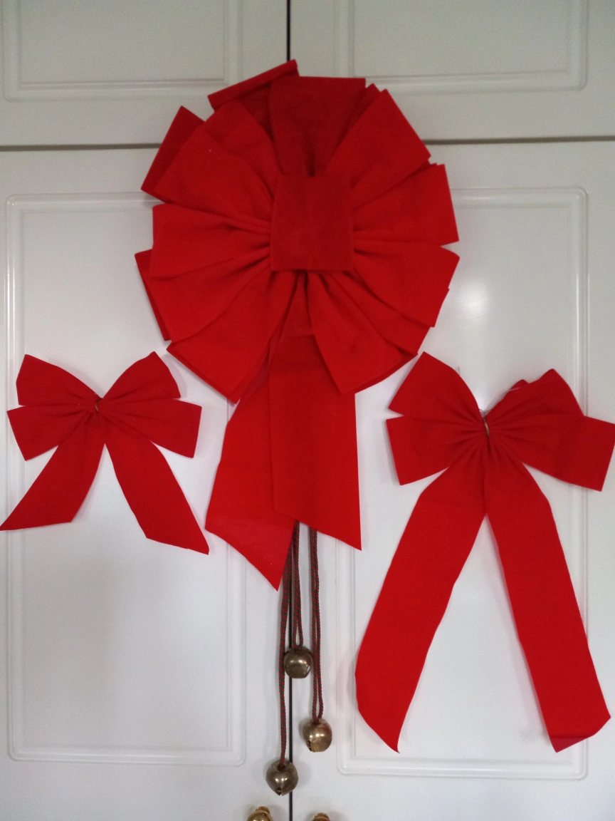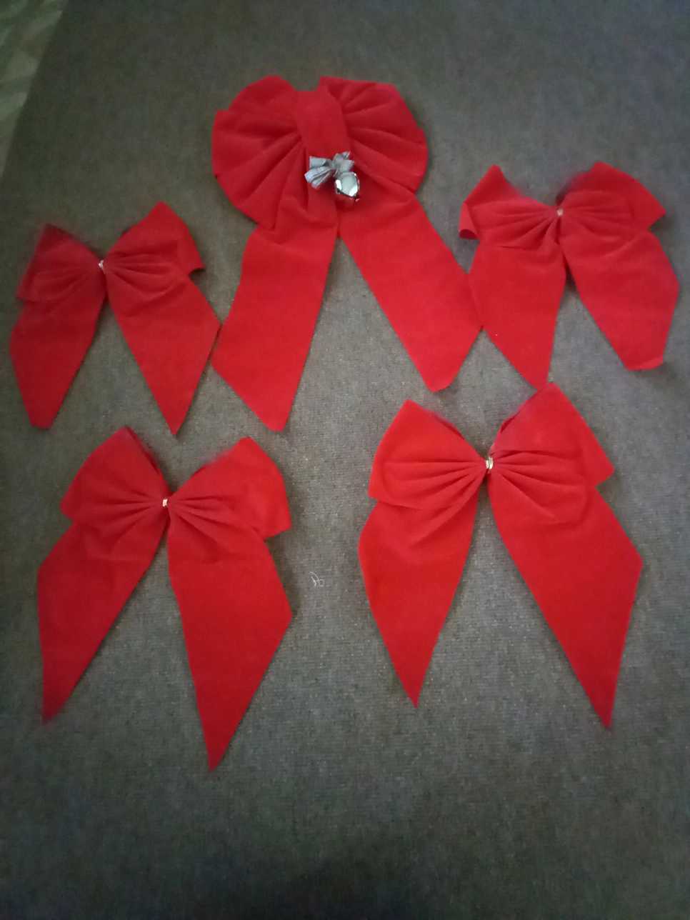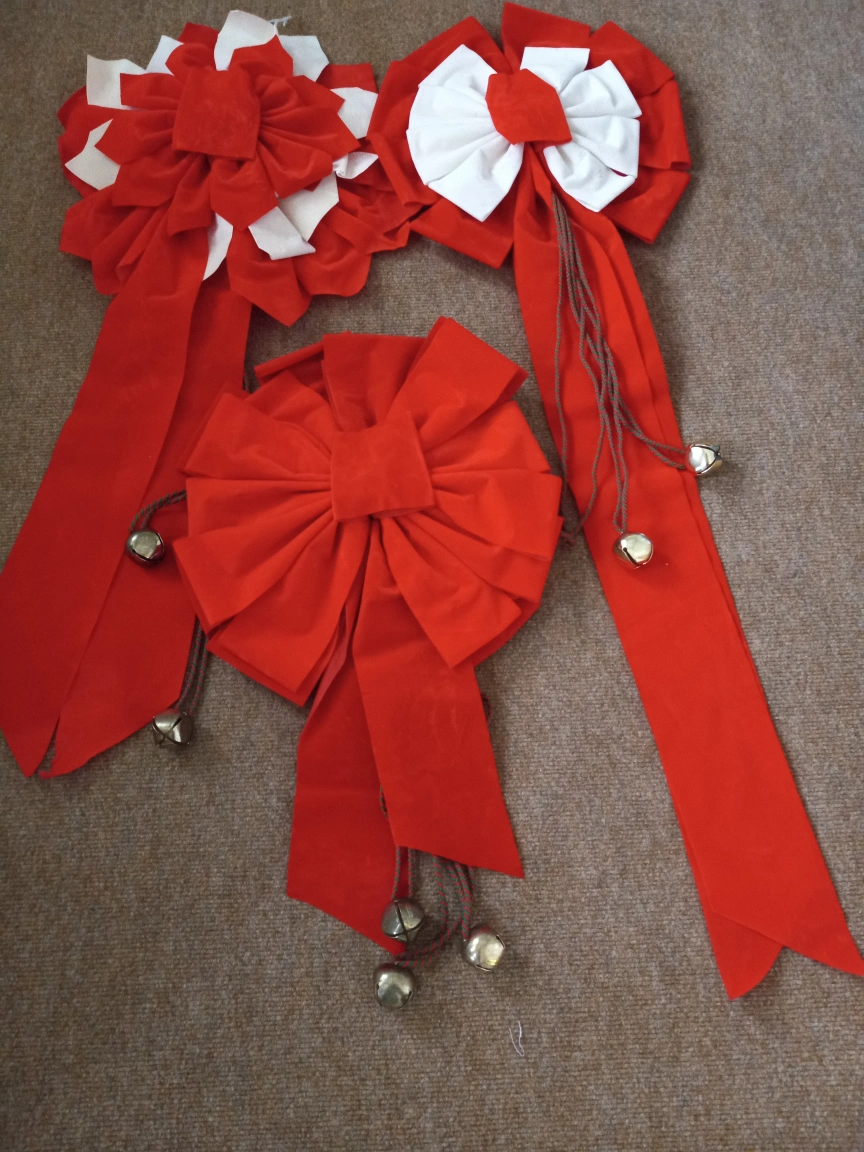 Velvet and assorted sizes, different prices. From $1 each to $10 for larger size, ideal for front door with ginggle bells.