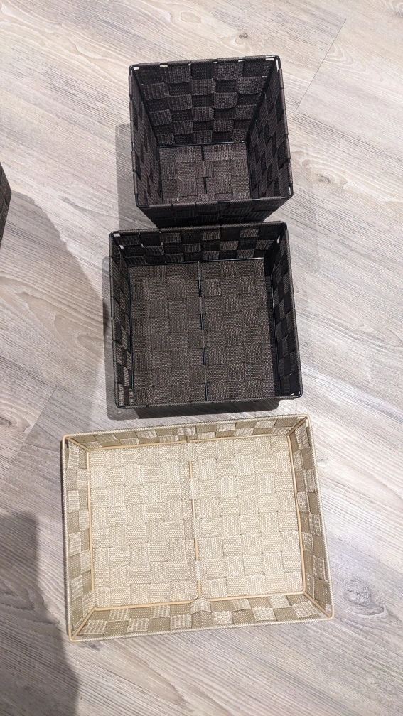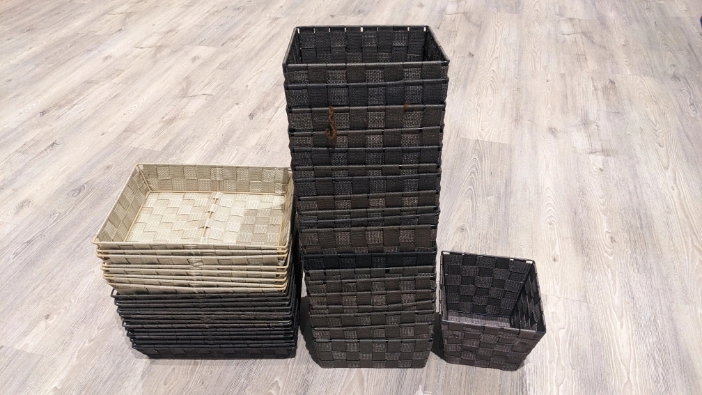 1 small brown, 18 med brown, 1 med black, 6 flat dark brown, 8 flat light brown, 8 flat beige Woven Storage Basket Woven Storage Bins Wicker Basket Storage Baskets Plastic Woven Storage Boxes Small Rectangular Basket Woven Basket Bin