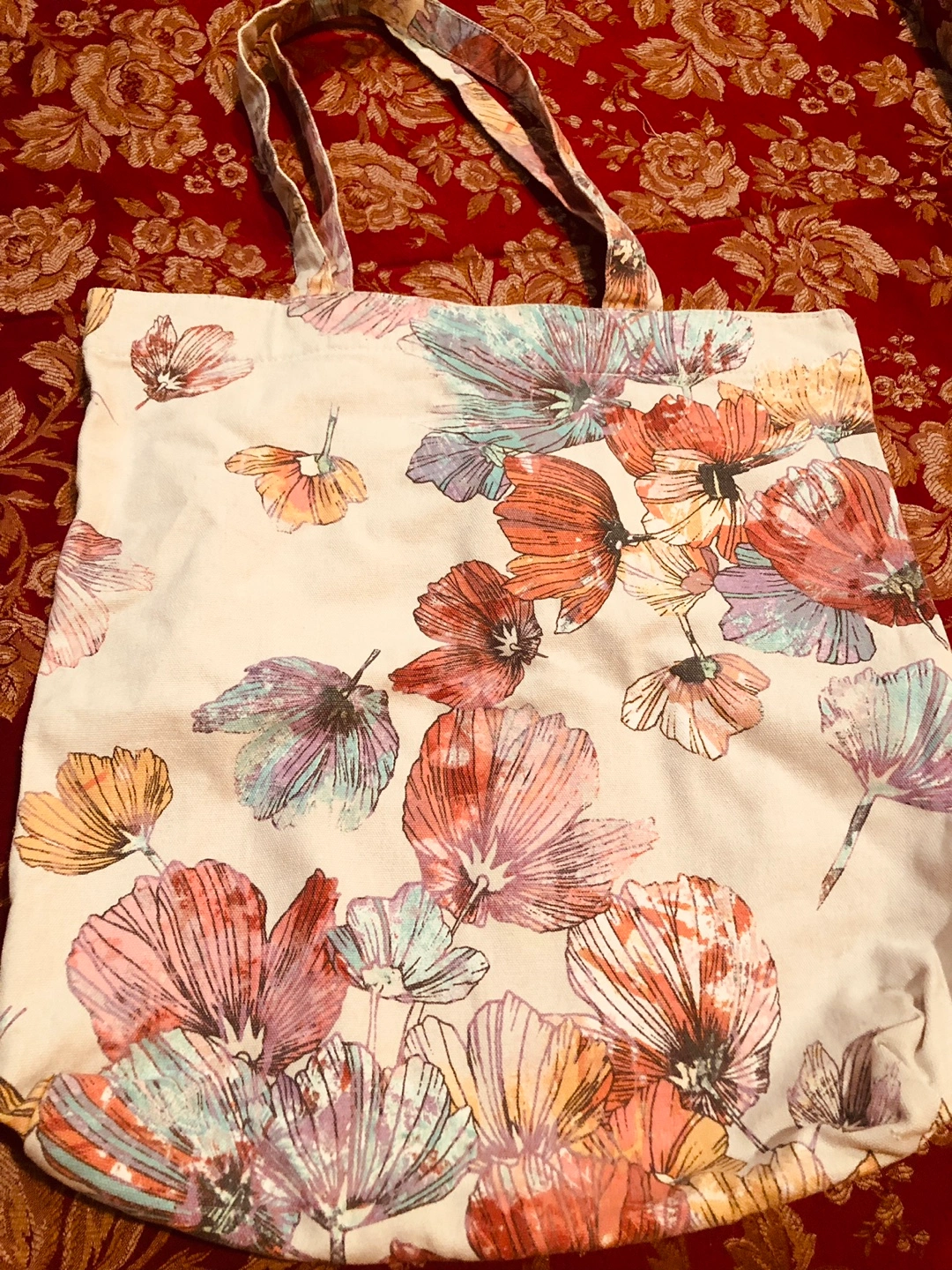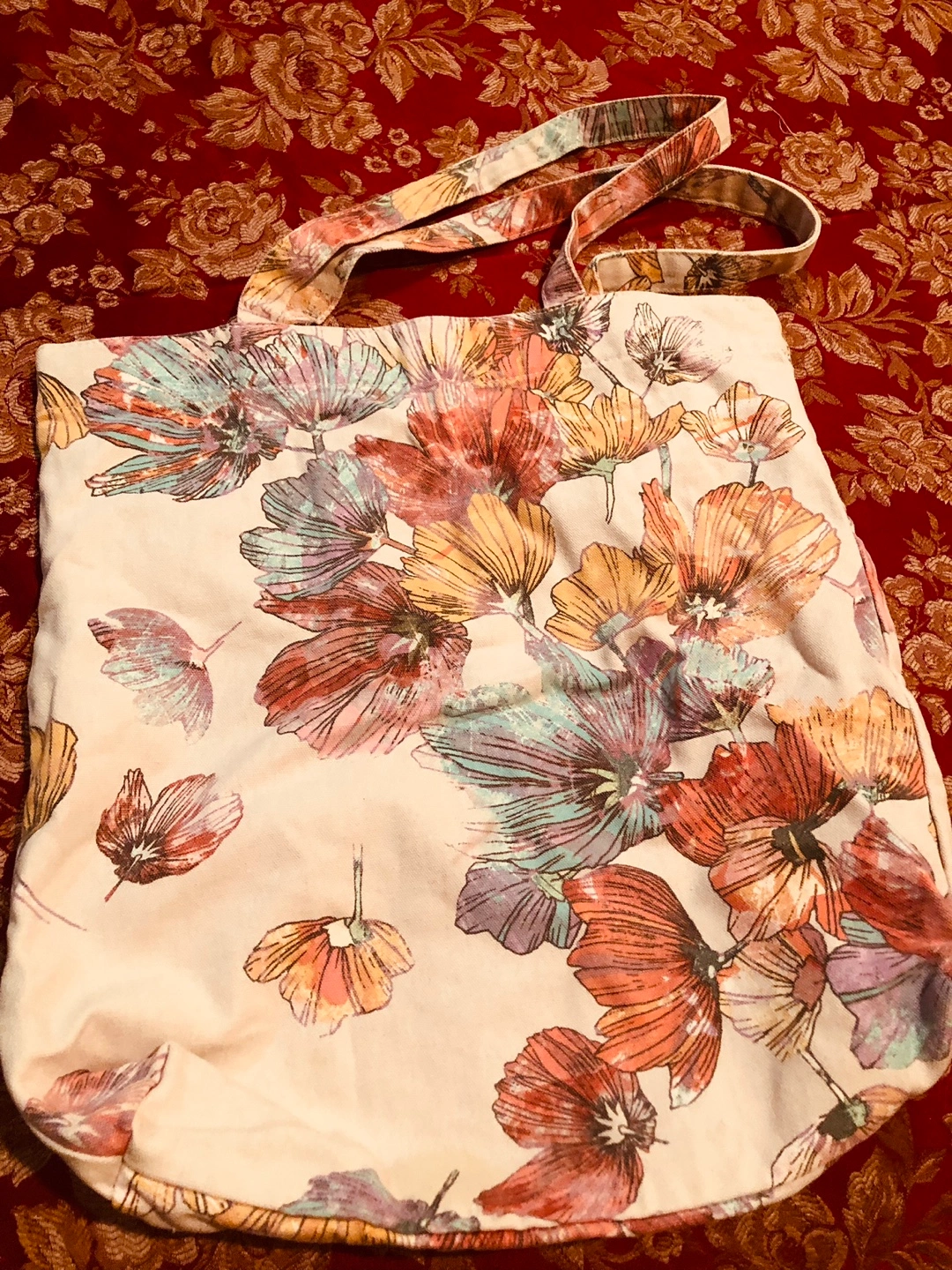 Large tote bag with floral print. Features a magnetic closure. One large interior pocket. Open to negotiations .