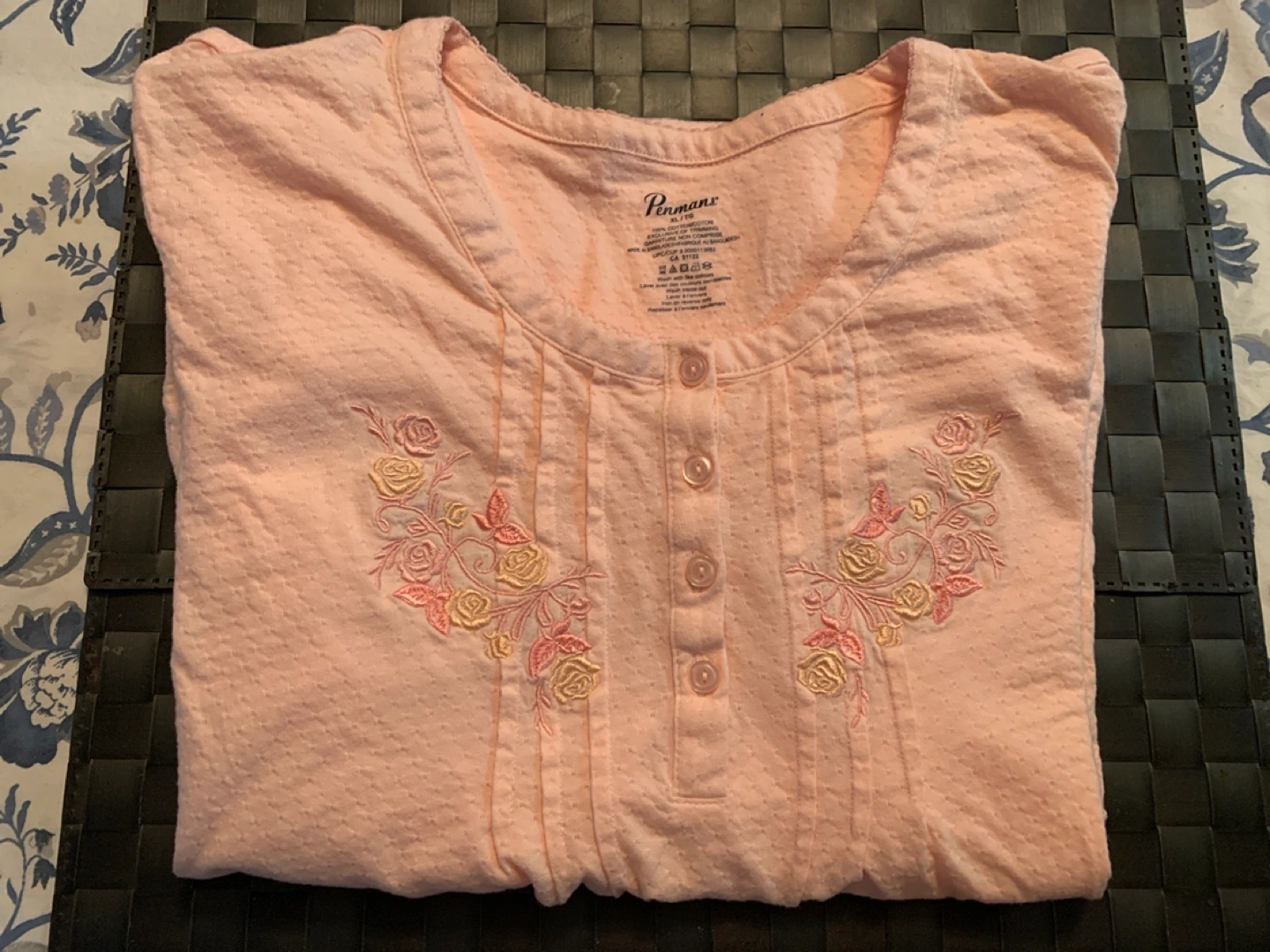 Short sleeve sleep shirt / nightgown with a floral design and button front. Only worn once
