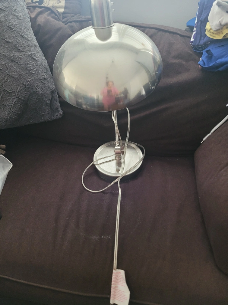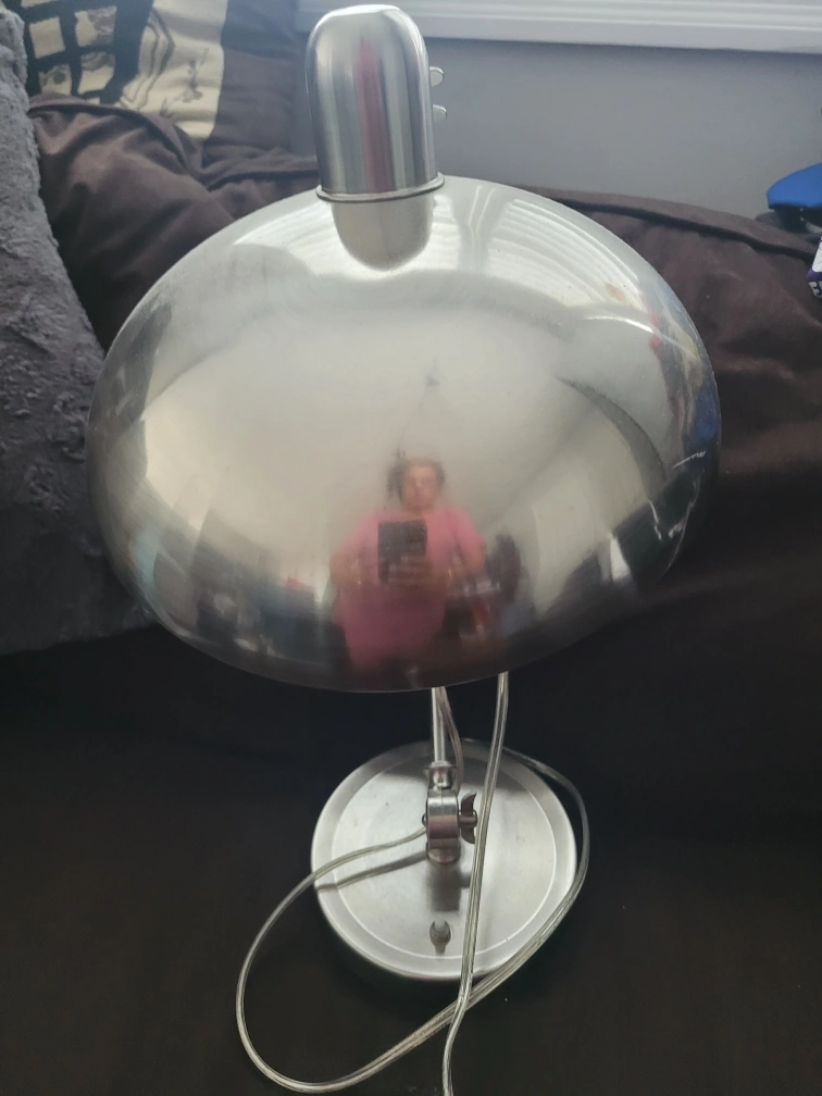 68Silver desk lamp. C-clamp base. Adjustable arm.