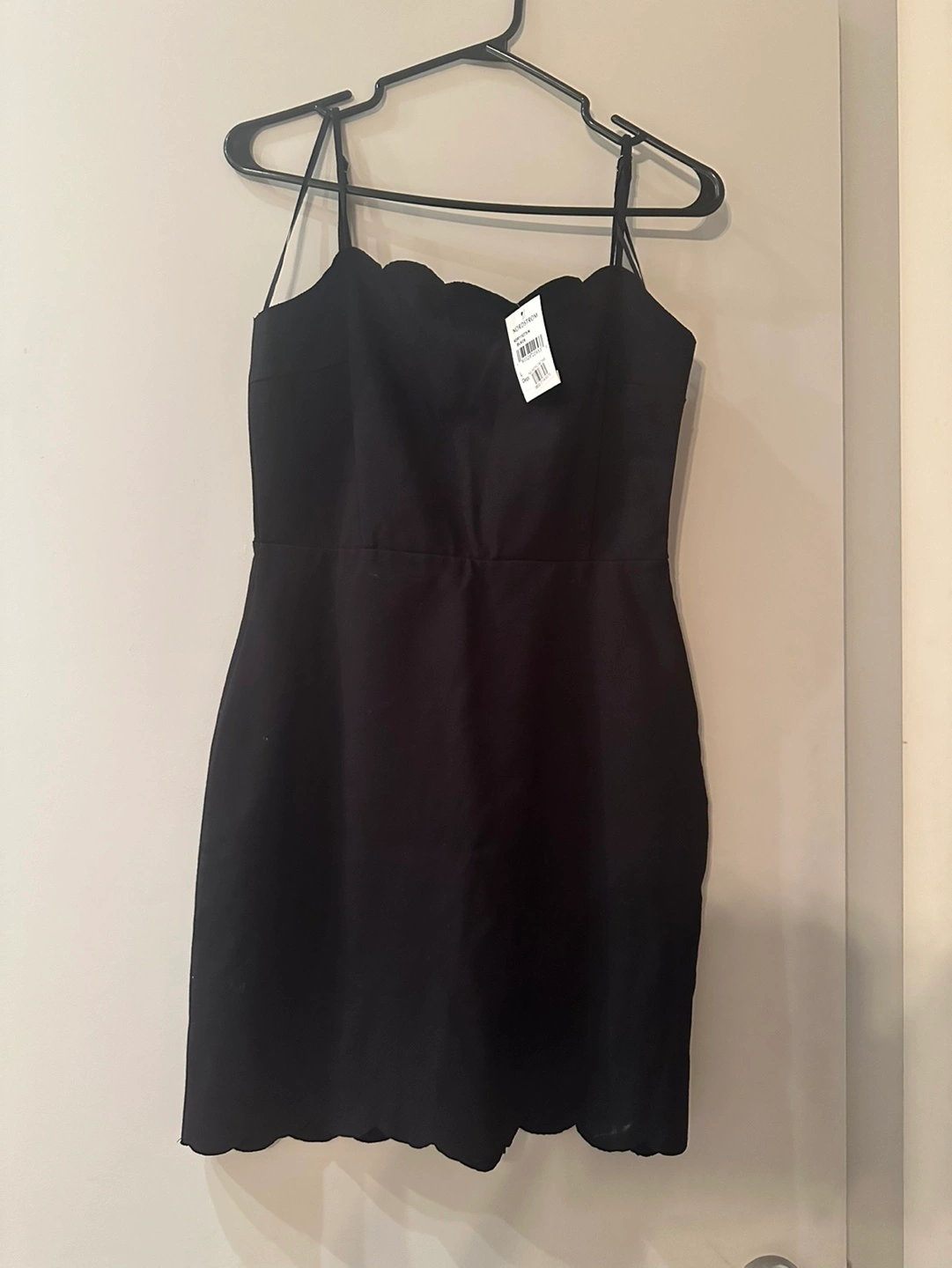 249Black spaghetti strap dress with scalloped hem. Size small.