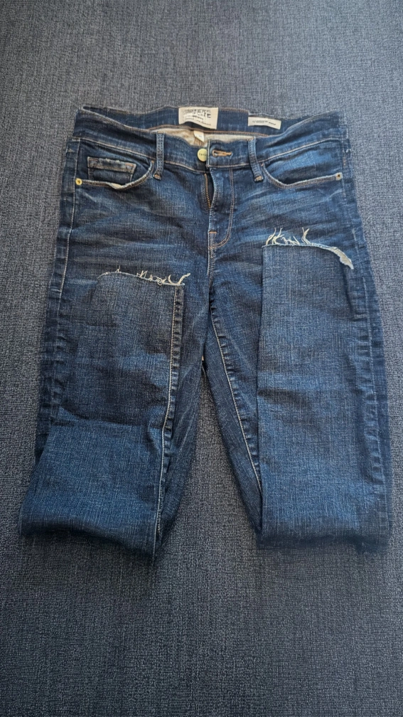 139Dark wash denim jeans with a distressed hem. Size 27. They retail for around $200