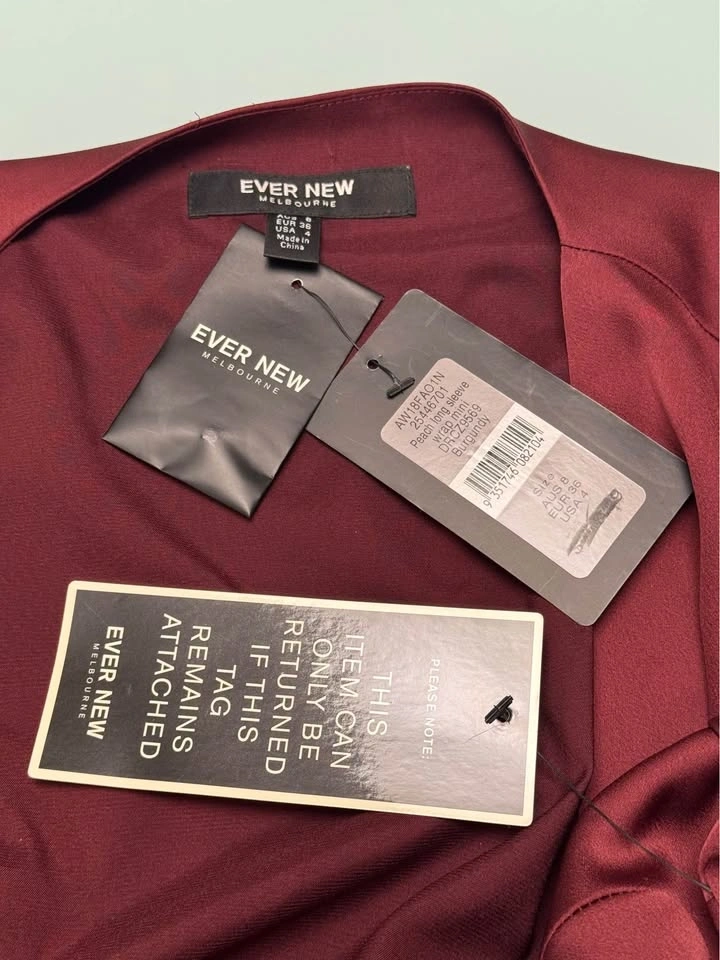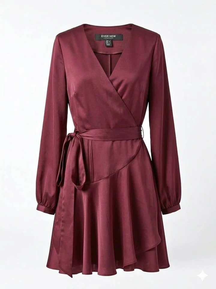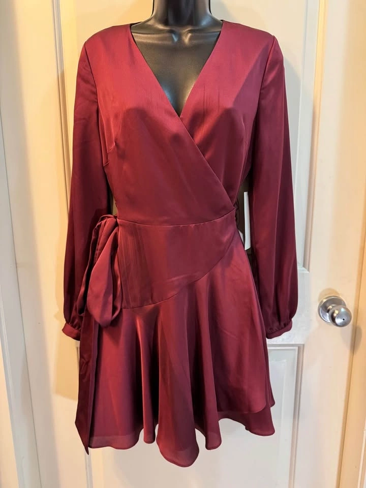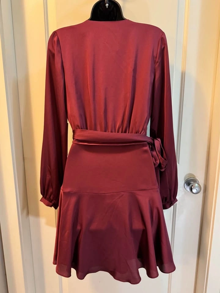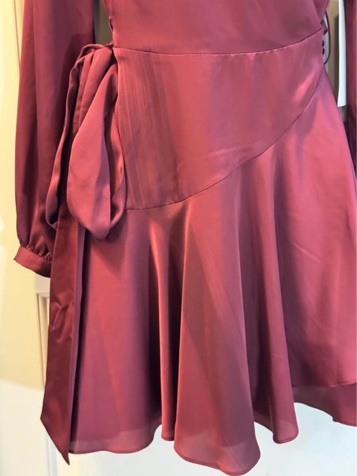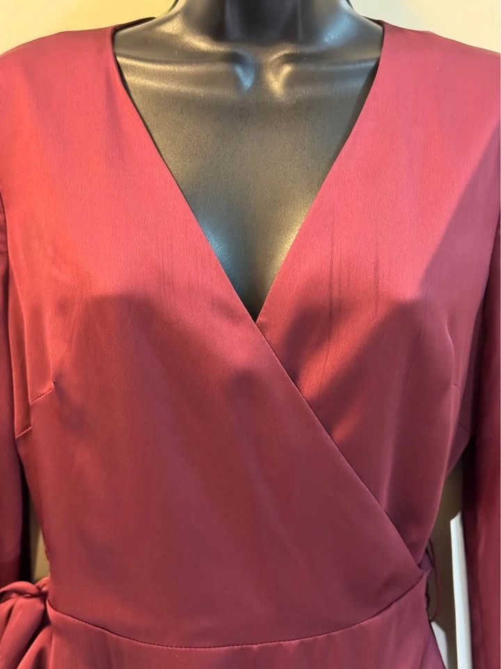 Ever New NWT Long Sleeve Wrap Dress Burgundy 4 (Fabric note)