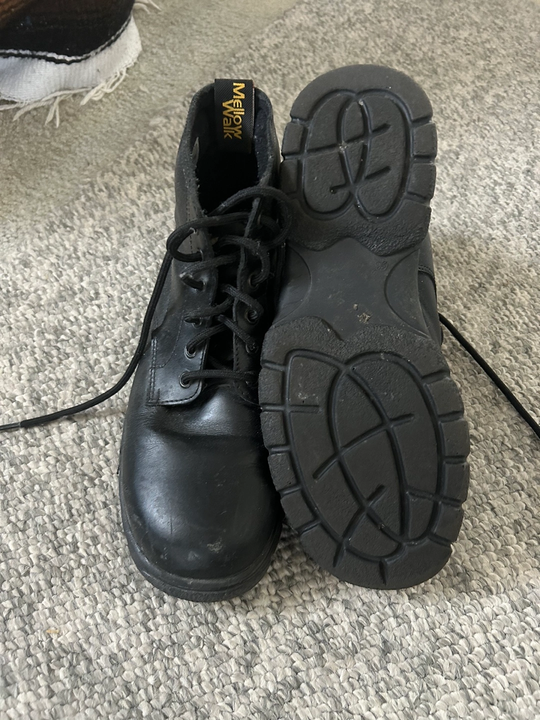 Buy & SellMellow Walk Black BootsMellow Walk Black Boots$20Black leather boots. Lace-up. Steel toedConditionLike newSize10BrandMellow WalkWHERE TO MEETKensington Cedar CottageView MapSELLERSabinaKensington Cedar Cottage15511 reviews0 chats·0 favorites·9 views